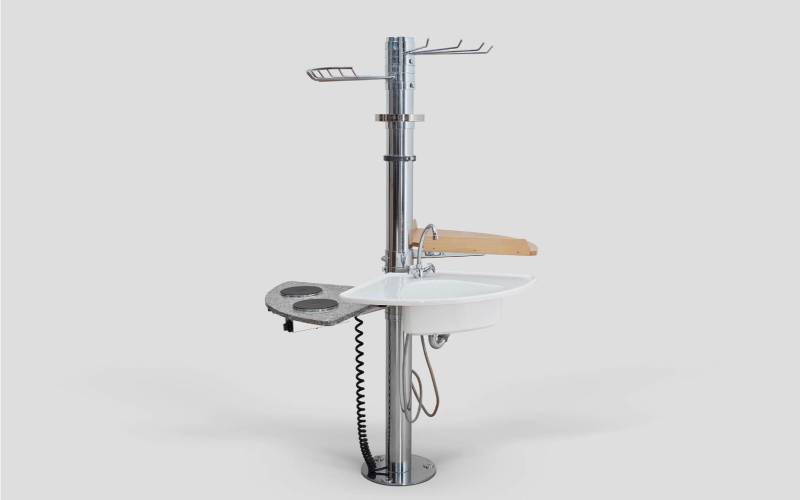 “크고 기능적인 부엌을 만들겠다는 일념이 있었어요. 최소의 규격으로 최대한의 공간을 활용한다는 목표로 설계된 프랑크푸르트 키친에서 아이디어를 얻었죠.” 그는 작은 체구를 지닌 자신의 신체 사이즈에 맞춰 동선을 설계하고, 주방 가구의 경우 수입 무늬목과 스테인리스스틸 등 자재 하나하나를 직접 골라 사제 업체에 제작을 맡겼다.