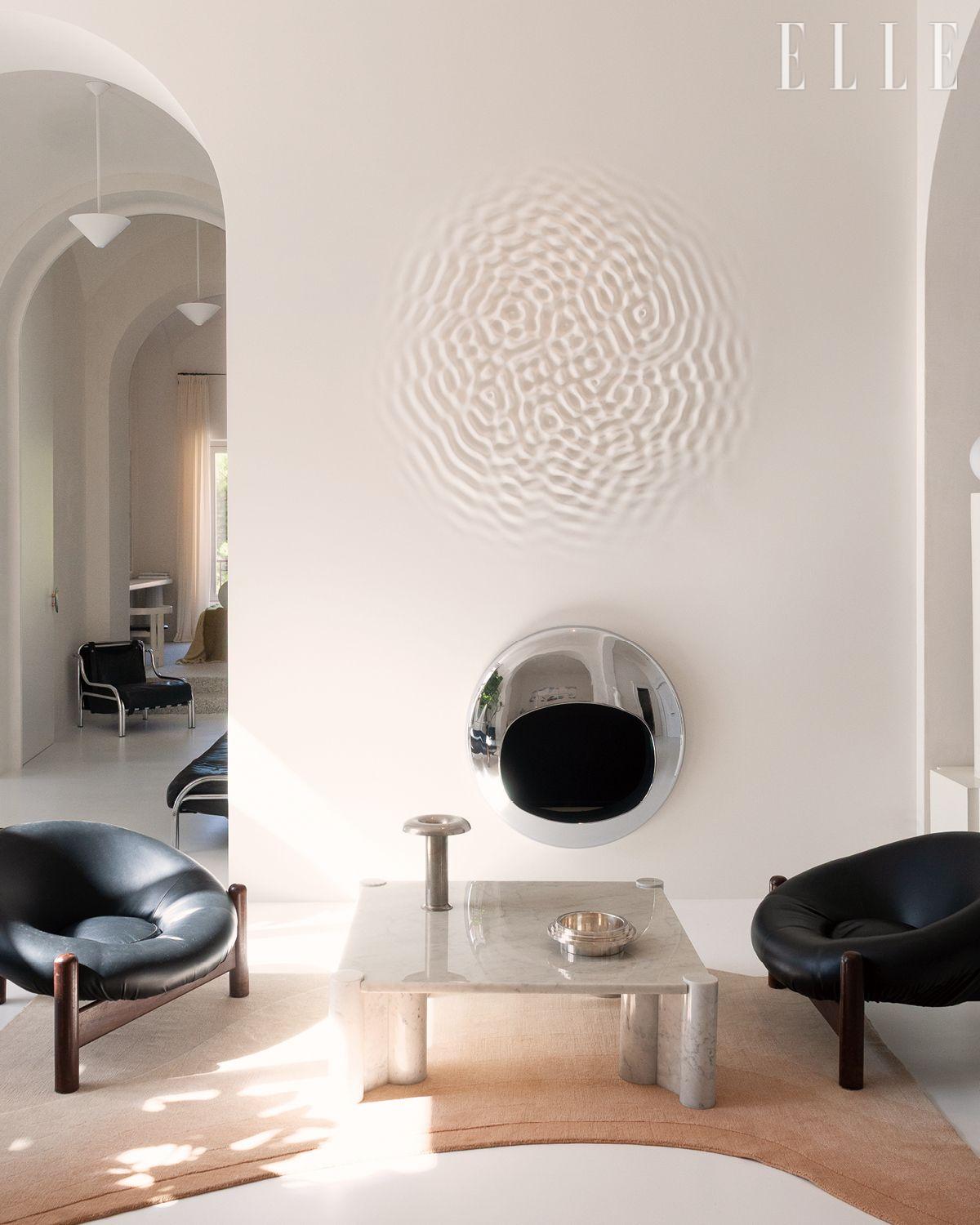 」나폴리와 밀란을 기반으로 활동하는 디자이너 줄리아노 안드레아 델루바는 디테일에 대한 집요함과 지역 역사를 존중하는 작업으로 주목받았다. 나폴리 포실리포(Posillipo)의 역사적 건물에 자리한 에르마노 자니니의 집은 1970년대 리모델링으로 가려진 바다 풍경을 다시 실내로 끌어들이는 데서 출발한다. 기존 방 구조는 유지하되 높고 슬림한 문으로 안팎의 경계를 흐려 시각적 연속성을 확보했다. 흰 벽과 레진 바닥으로 지중해의 빛을 부드럽게 퍼뜨리고 절제된 컬러로 건축과 풍경, 가구, 예술 작품의 조화를 꾀했다. 폼페이 고대 유산부터 현대미술에 이르기까지 서로 다른 시대의 작품이 한 공간에서 조용히 공존한다.