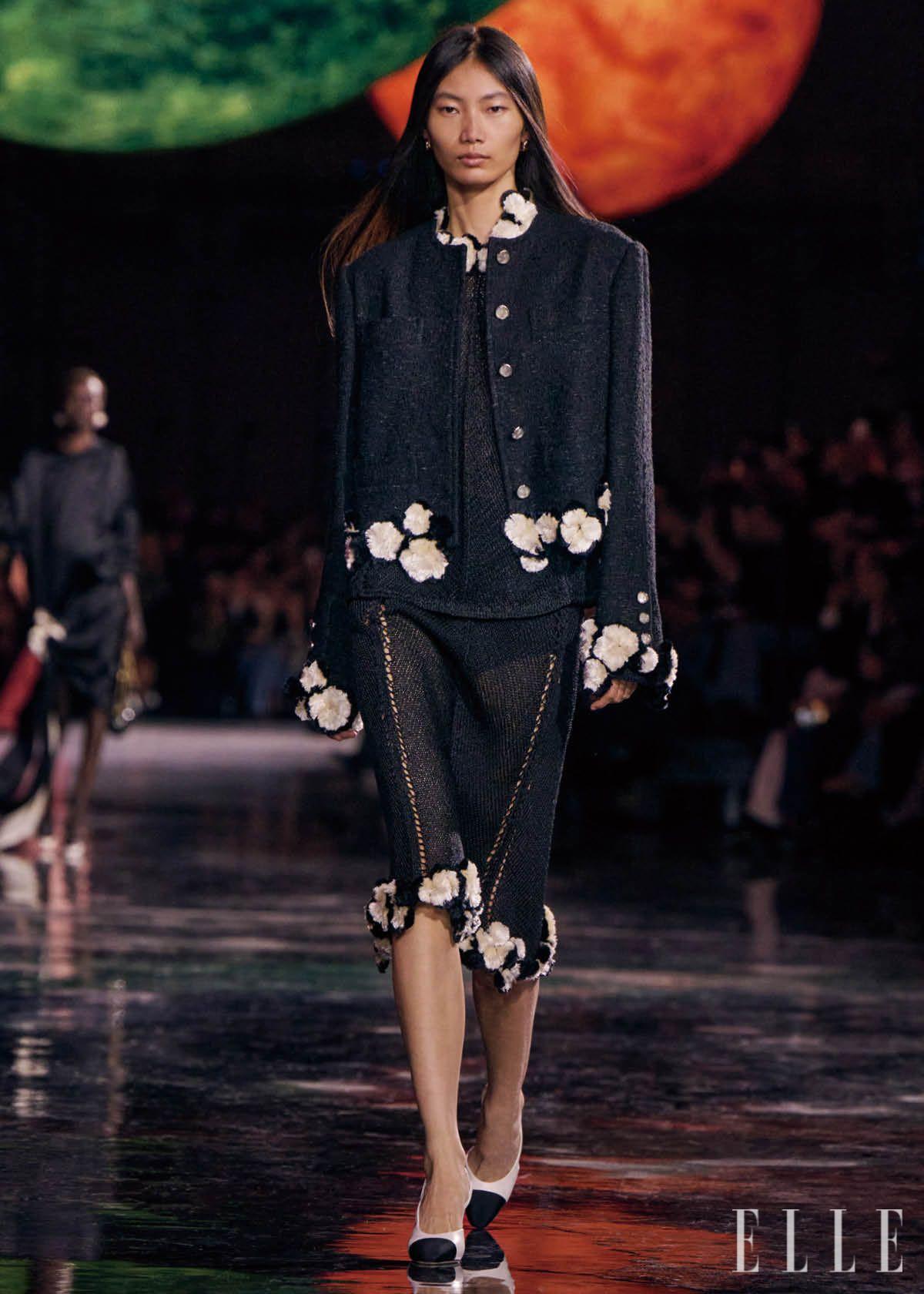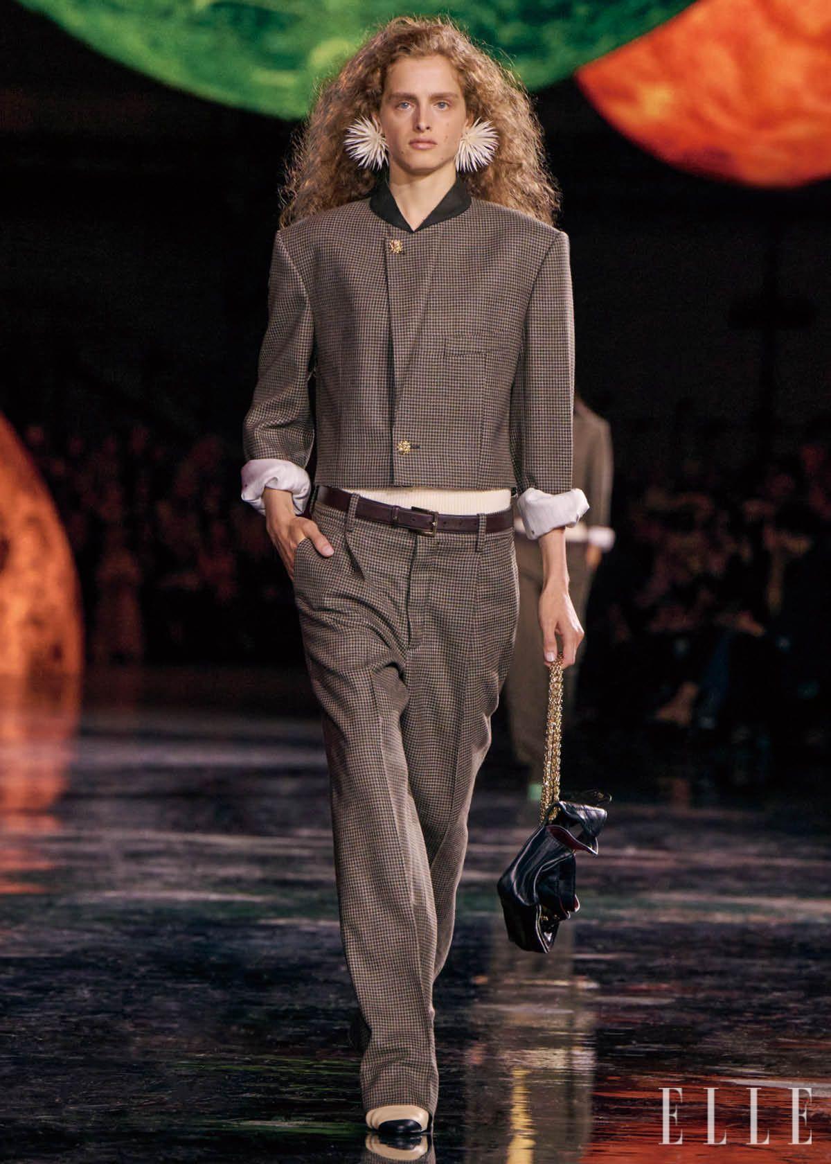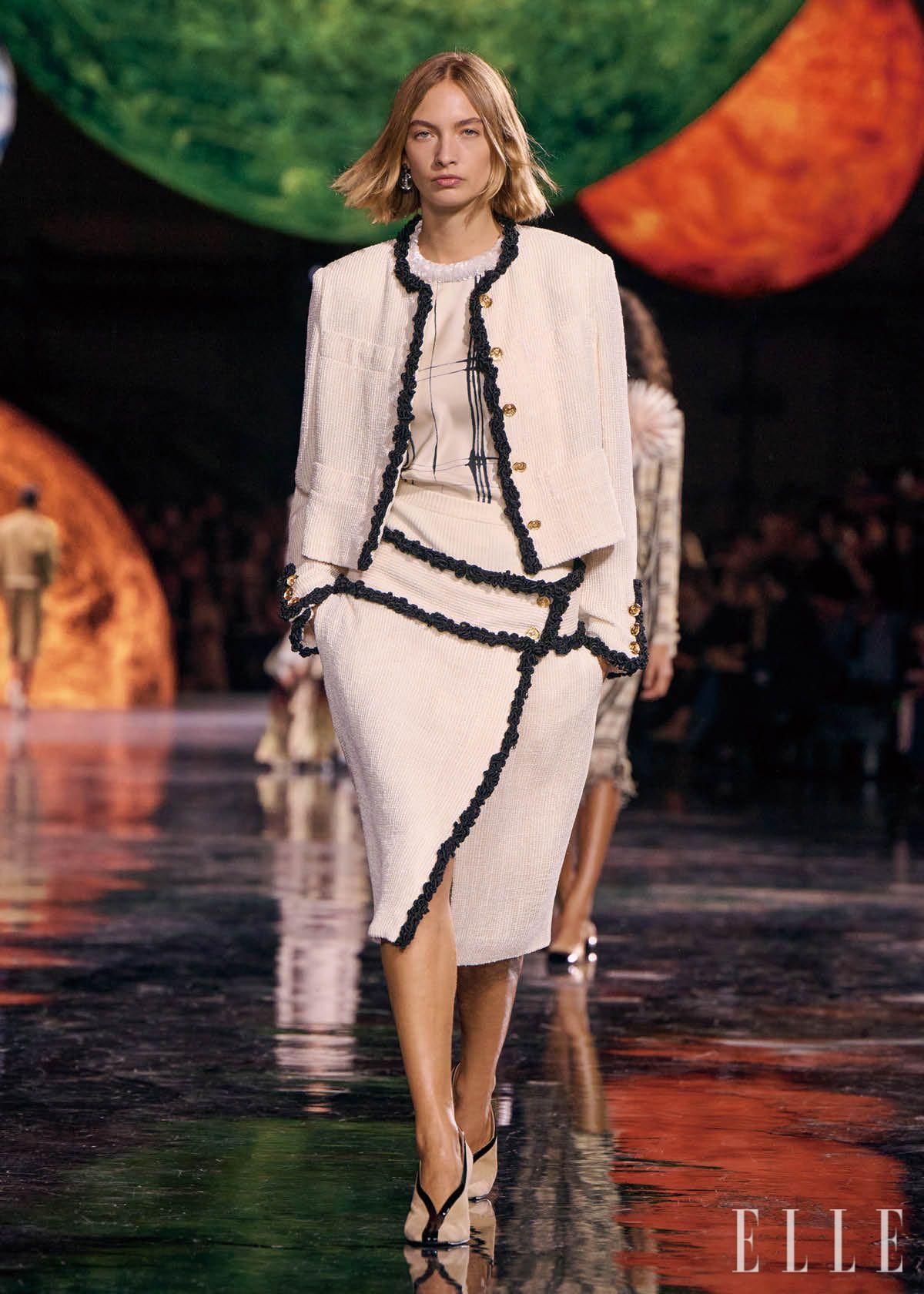 그 모든 시간이 축적된 끝에 2026년 봄 여름 시즌, 마티유 블라지는 샤넬에서 자신의 첫 쇼를 선보였다. 뜨거운 기대와 수많은 예측 속에서 공개된 그의 첫 쇼는 커다란 우주 위에서 펼쳐졌다. 어둡고 깊은 공간, 그 안에서 부유하는 행성 구조물들, 은하수를 닮은 마블 타일이 수없이 놓인 쇼장은 샤넬이라는 거대한 우주 그 자체였다. 그리고 마티유 블라지는 그 우주 한가운데에, 새하얀 도화지를 펼쳐냈다. 첫 컬렉션에서 블라지는 무언가를 더하기보다 정리하는 데 힘썼다. 샤넬의 아이코닉한 트위드는 패브릭이라는 고정된 형태를 벗어나 어디에서든 덧입힐 수 있는 이미지가 됐다.