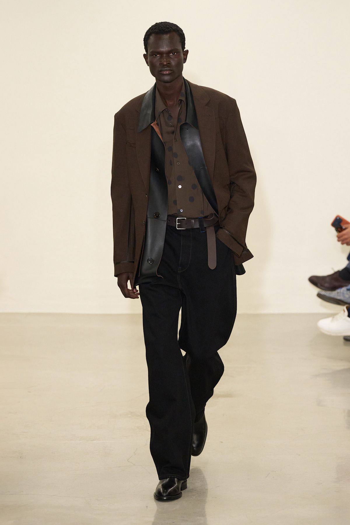 」조나단 앤더슨이 이끄는 디올에서 청바지와 재킷의 조합은 여전히 유효합니다. 이번 시즌의 차별점은 깔끔한 트위드 재킷과 실용적인 포켓이 더해진 카고 스타일의 데님 팬츠를 매치하는 것. 더불어 스키니한 라인의 데님 팬츠와 함께 슬랜더 보이도 다시 등장하기 시작했습니다.