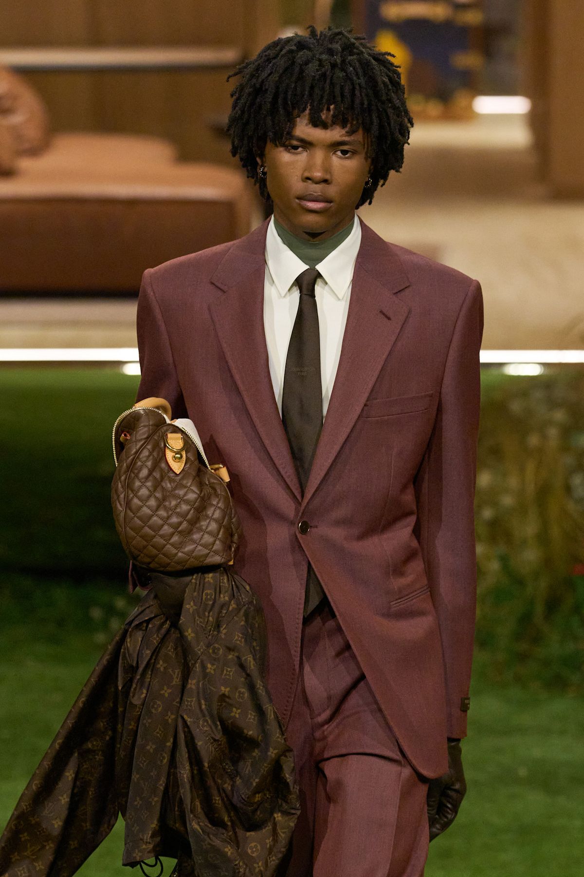 」루이 비통이 이번 시즌에 제안하는 가방 메는 법, 아니 드는 법은 손으로 쥐는 대신 팔 아래 구겨 넣는 것입니다. 노트북을 들고 다녀야 하는 하는 아침 출근길에는 적합하지 않지만 여유로운 주말에 즐기기에는 제격입니다.