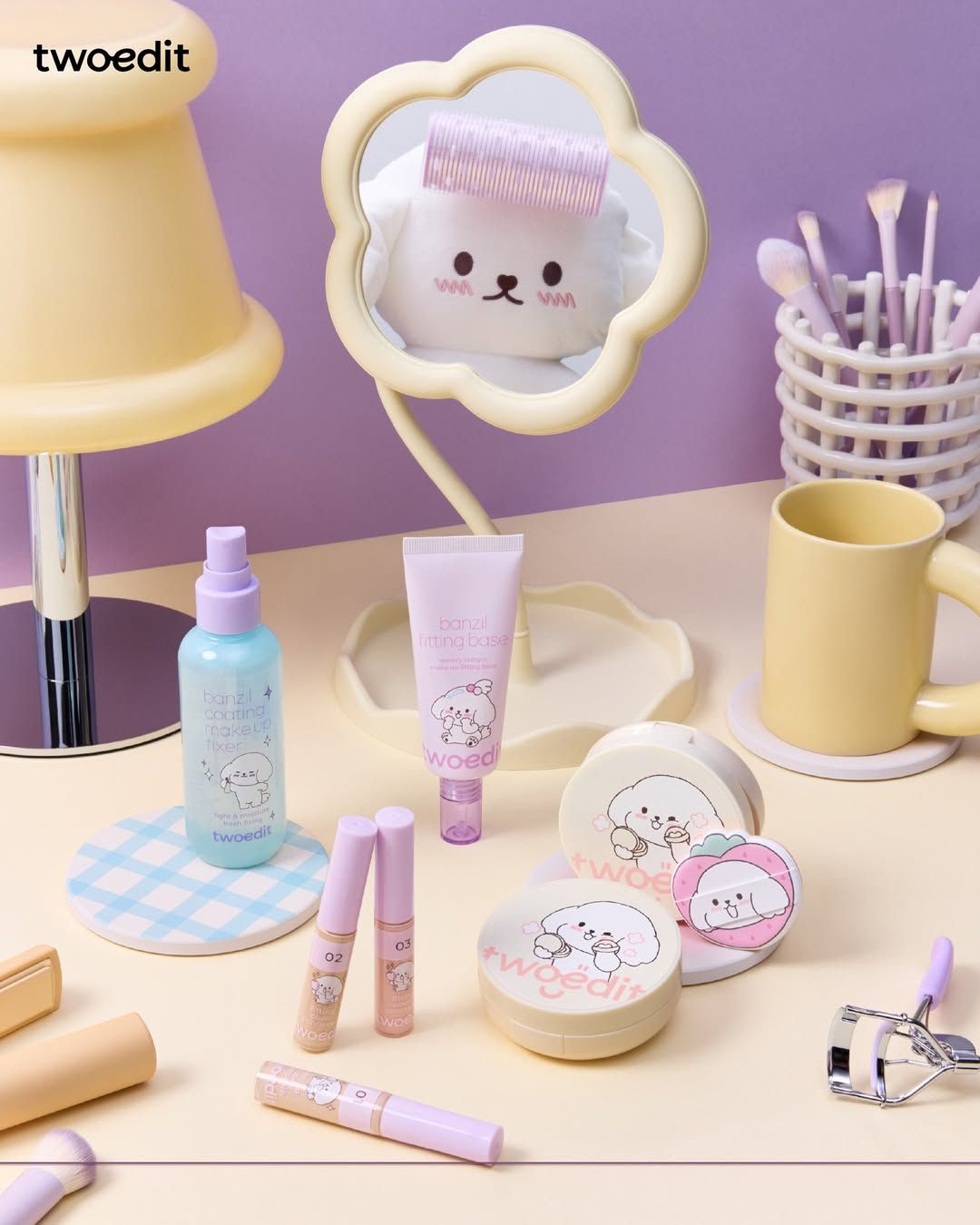 애경산업의 다이소 뷰티 브랜드 투에딧이 귀여운 콜라보레이션 소식을 전했습니다. 카톡 인기 이모티콘 캐릭터인 세숑이와의 만남으로 소장 욕구를 자극하는 비주얼을 완성했는데요. 러블리한 파스텔톤 케이스 위에 세숑이가 그려져 뷰티 마니아들의 마음을 단숨에 저격! 퍼프부터 컨실러, 쿠션, 베이스 제품 등 화장대에 하나하나 채운 뒤 싶은 디자인과 메리트 있는 가격까지 더해졌으니 쉽게 지나칠 수 없겠죠?