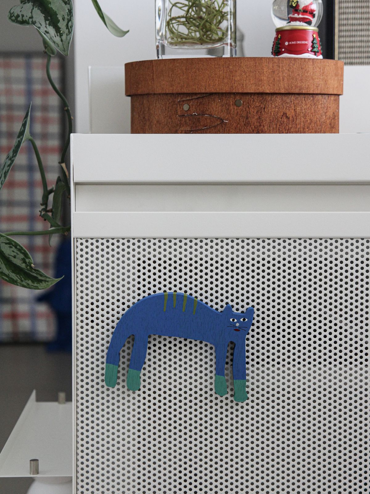 이 집에 가장 처음 들인 리빙 아이템은 갑빠오 작가님의 나무 자석이었어요. 하얀 벽의 모서리를 어떻게 꾸밀지 고민하다가 선택한 아이템인데, 지금은 제 공간을 떠올리면 자연스럽게 함께 언급되는 시그니처가 되었어요.