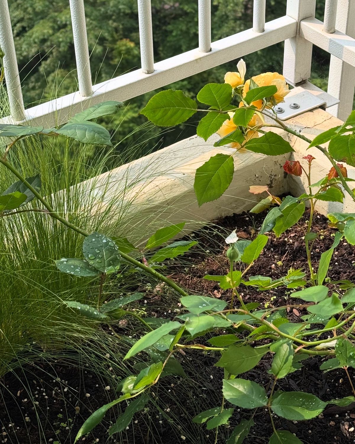 특히 에어컨 실외기 공간 옆, 아파트 외벽에 딸린 작은 자투리 공간에 장미와 수염풀을 심어 소박한 정원을 만들었어요. 숲을 바라보며 바람에 흩날리는 잎사귀 소리를 듣고 있으면 그 어디도 부럽지 않은 저만의 낙원이 됩니다.