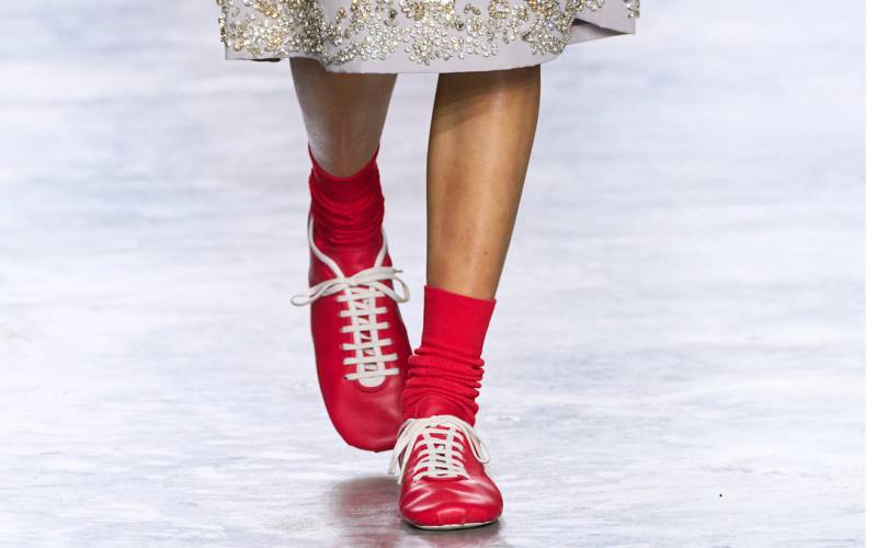 룩의 온도를 결정하는 스타킹과 운동화 조합