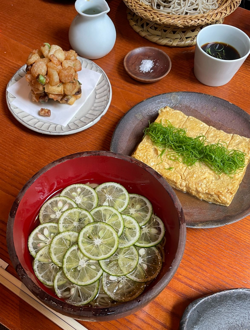 벚꽃길 끝자락에 있는 일본 전통 스타일의 레스토랑. 화려함 대신 일본 특유의 담백함과 정갈함을 느낄 수 있는 소바 전문점입니다. 메밀 향을 또렷하게 살린 냉소바가 이곳의 메인 메뉴. 여기에 감칠맛이 느껴지는 계란말이와 씹을 때마다 육즙이 터지는 가라아게를 곁들이면 완벽한 한 끼가 됩니다. 관광객보다 동네 주민이 간단한 식사를 위해 들리는 곳이라 웨이팅도 적은 편이죠.