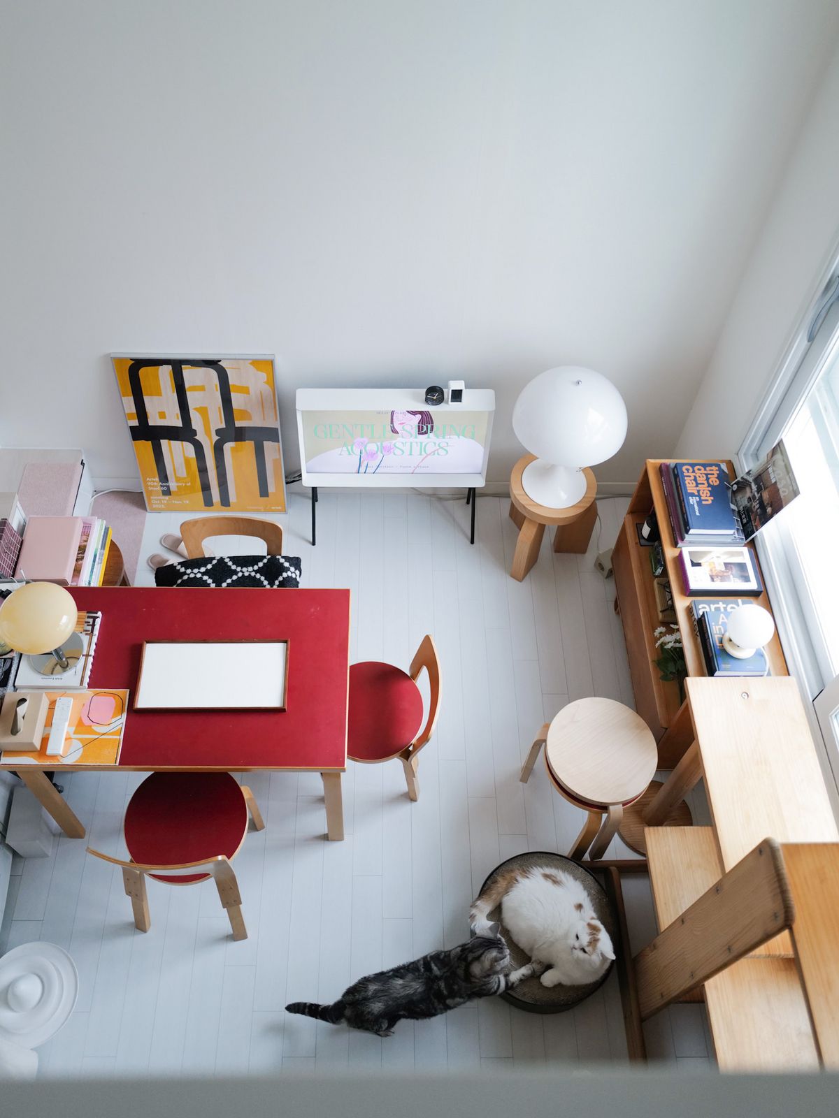 천장이 높은 공간은 고양이도 춤추게 할까요? 호두와 모카, 두 마리의 고양이와 공생하는 쏨타의 집은 층고가 높은 복층 원룸입니다. 본능적으로 수직 공간을 선호하는 고양이를 위한 선택이죠. 직사각 형태의 단순한 공간이지만, 쓸모 있고 아름다운 아이템으로 군더더기 없이 채웠습니다. 반려동물과 사는 이들의 집을 들여다보는 인터뷰 시리즈 #멍냥집, 네 번째 이야기.