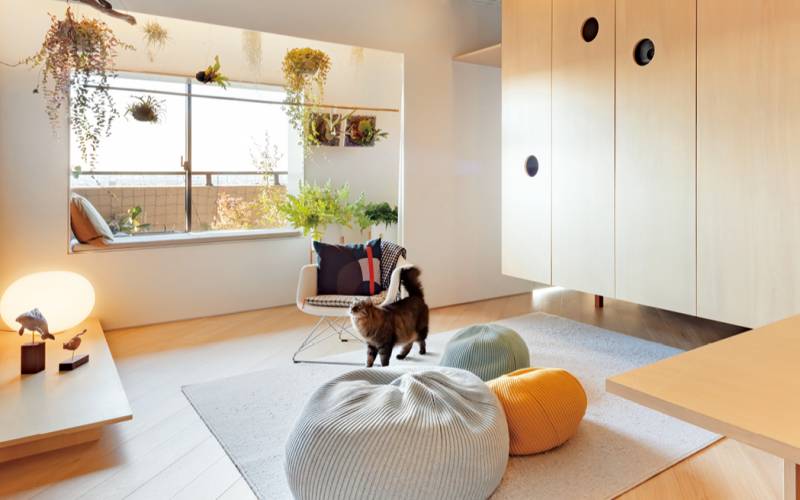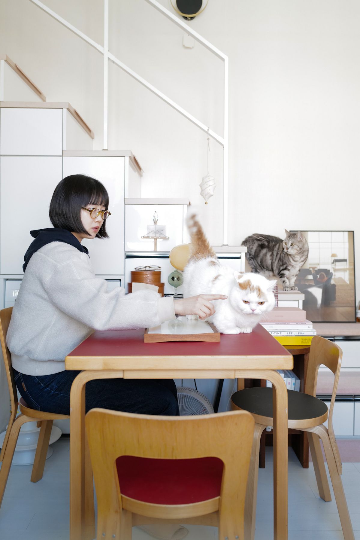 이사를 한 지는 얼마 되지 않았는데요. 집을 구할 때, 수직 공간을 좋아하는 고양이들을 위해 복층 구조의 집을 찾는 것이 중요한 기준이었어요. 결국 직사각형 형태의 복층 구조 집을 찾았어요. 실제로 호두와 모카는 위층으로 올라가 아래 공간을 보는 걸 좋아하더군요. 또 창문이 크고 창밖에 볼거리가 있는 집이어야 했어요. 고양이들이 창밖을 구경하는 걸 즐기기 때문이죠. 이 집은 그 조건도 충족해요.
