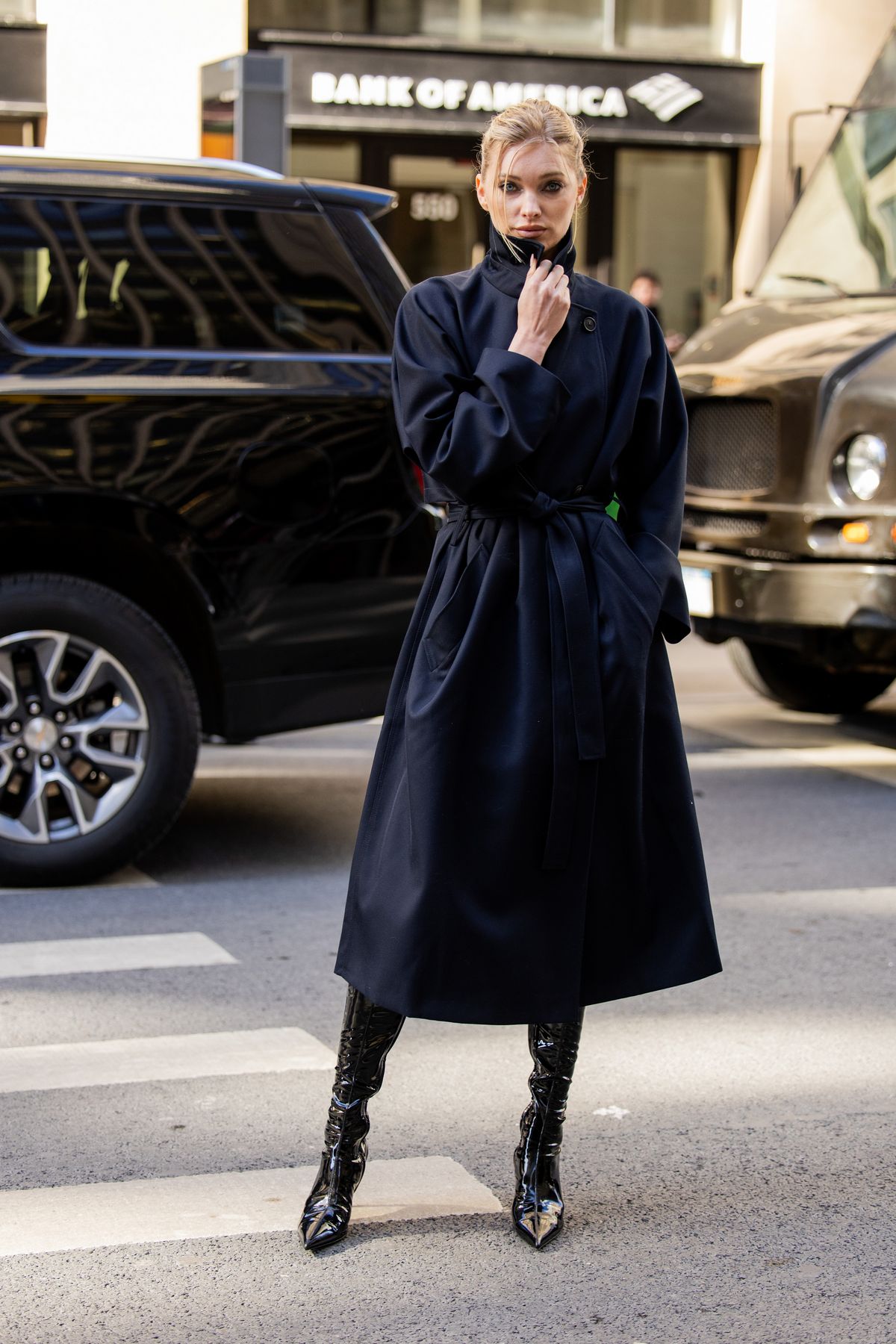 블랙과 네이비는 함께 입지 말라는 경고는 이제 케케 묵은 조언에 불과합니다. 블랙 드레스와 부츠, 핸드백 위에 네이비 코트를 걸치면 훨씬 깊이 있는 컬러 레이어링이 완성되거든요. 울 코트처럼 묵직한 소재는 물론, 가벼운 포플린 아우터도 잘 어울립니다. 두 컬러가 만드는 미묘한 대비가 오히려 세련된 긴장감을 더하죠.