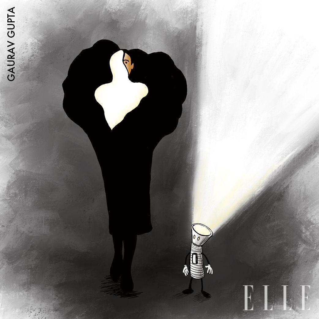 」가우라브 굽타의 쇼는 시작부터 눈부셨다. 오프닝에 등장한 검은 가운 차림의 인물은 말 그대로 빛나고 있었다. 모델이 몸 앞에 발광하는 입체 조각을 두르고 있었던 것. 조형물처럼 보이면서 분명 옷으로 해석되는 그 물체가 어떻게 만들어졌는지 컬렉션 내내 궁금증을 자아냈다.