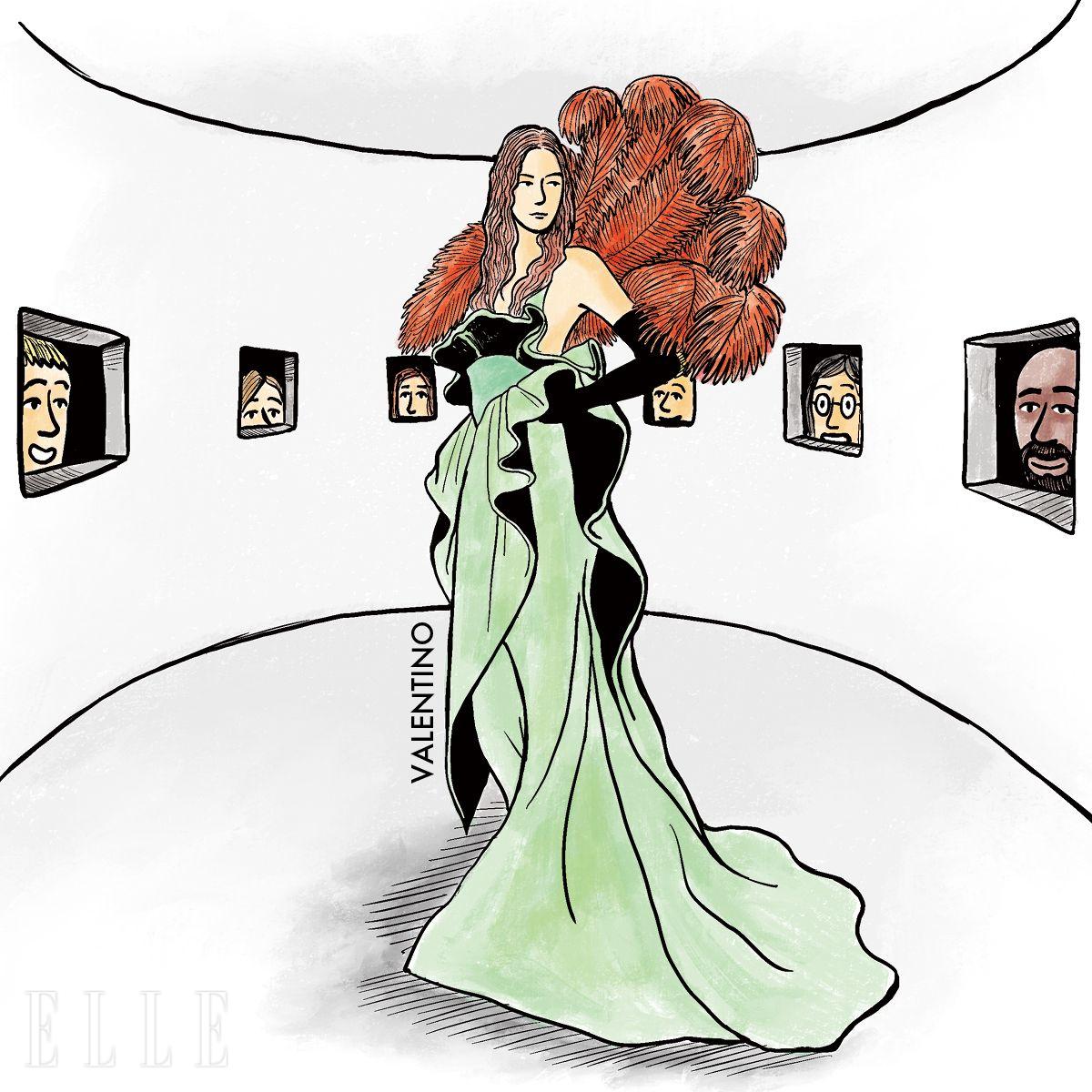 」작은 창문이 달린 거대한 원통 구조물로 가득 찬 발렌티노의 쇼장. 관객은 서로를 마주보지 않고 원통 내부의 런웨이를 들여다보기 위해 등을 돌린 채 자리를 잡았다. 모델은 한 명씩 등장했고, 관객은 작은 구멍 너머로 그 모습을 숨죽이며 관찰했다. 그 순간만큼은 공간과 시선마저 연출의 일부였다. 브라보, 미켈레!