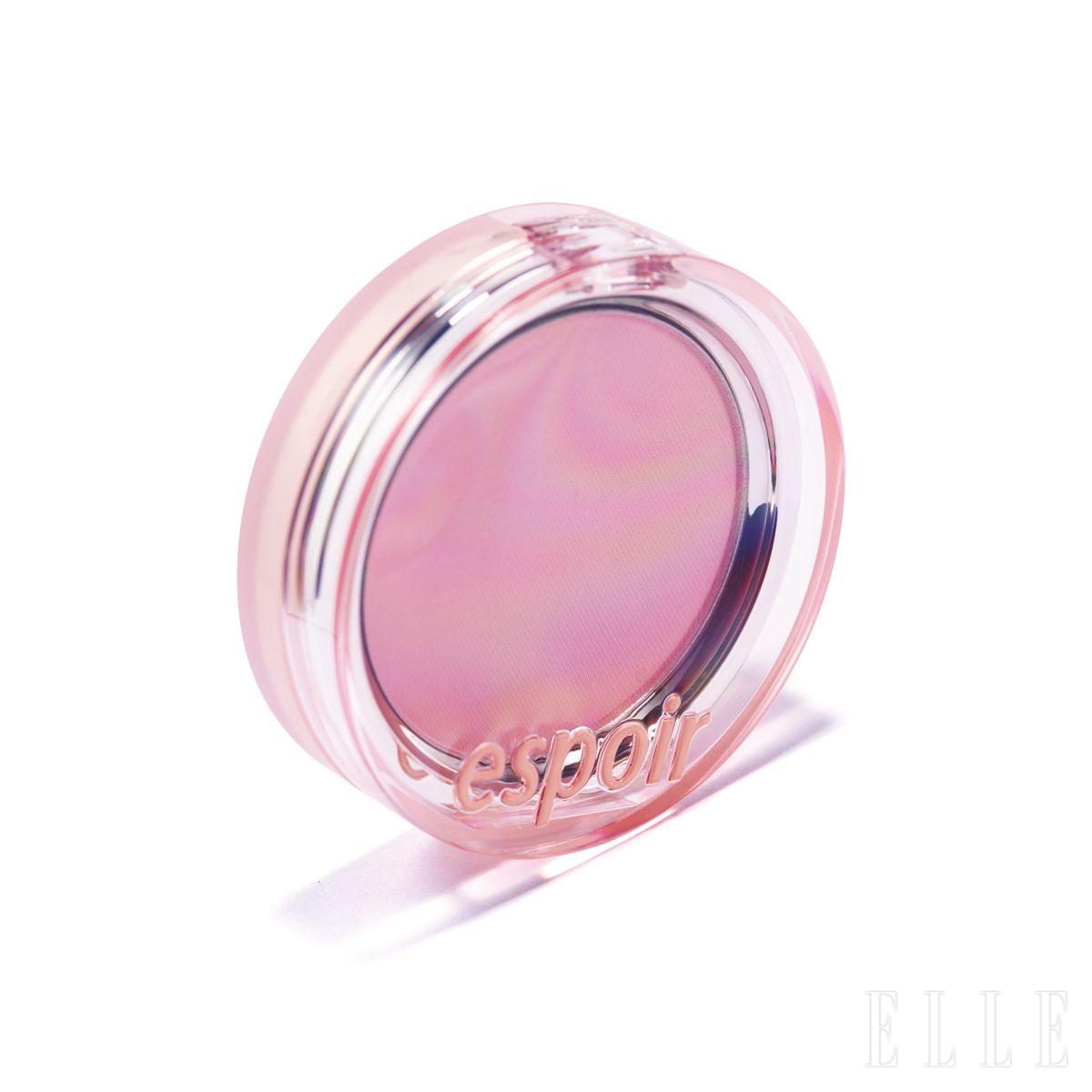 솜사탕처럼 라이트한 분홍빛이 발그레한 두 볼을 만들어준다. 파우더 입자가 '초초초’ 고와 모공이 매끄럽게 커버되는 블러 웨어 블러쉬, 누 핑크, 2만4천원, Espoir.