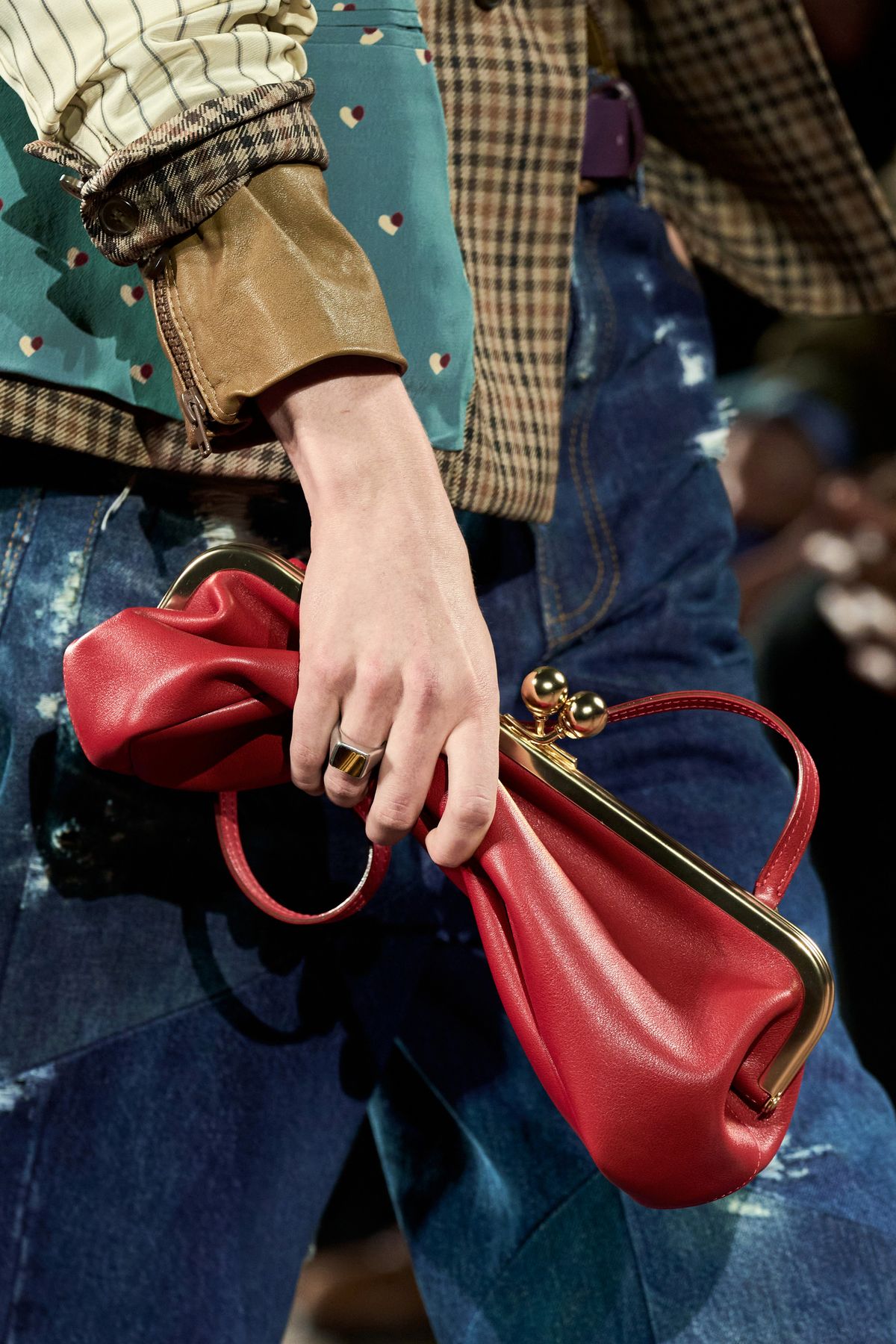 가죽 아이템은 동서로 길게 뻗은 실루엣이 특징. 하우스의 턴록(Turnlock)과 키스록(Kisslock) 하드웨어를 활용한 백 시리즈가 눈길을 끈다. ‘키스록 프레임 백’은 어깨 아래 자연스럽게 닿는 미니멀한 형태로, 헤리티지 톤의 아몬드·메이플 컬러와 체크 울 버전으로 선보인다. ‘턴록 해버색(Haversack)’과 ‘턴록 메신저 백’은 기능적이면서도 빈티지 감성을 더한다.