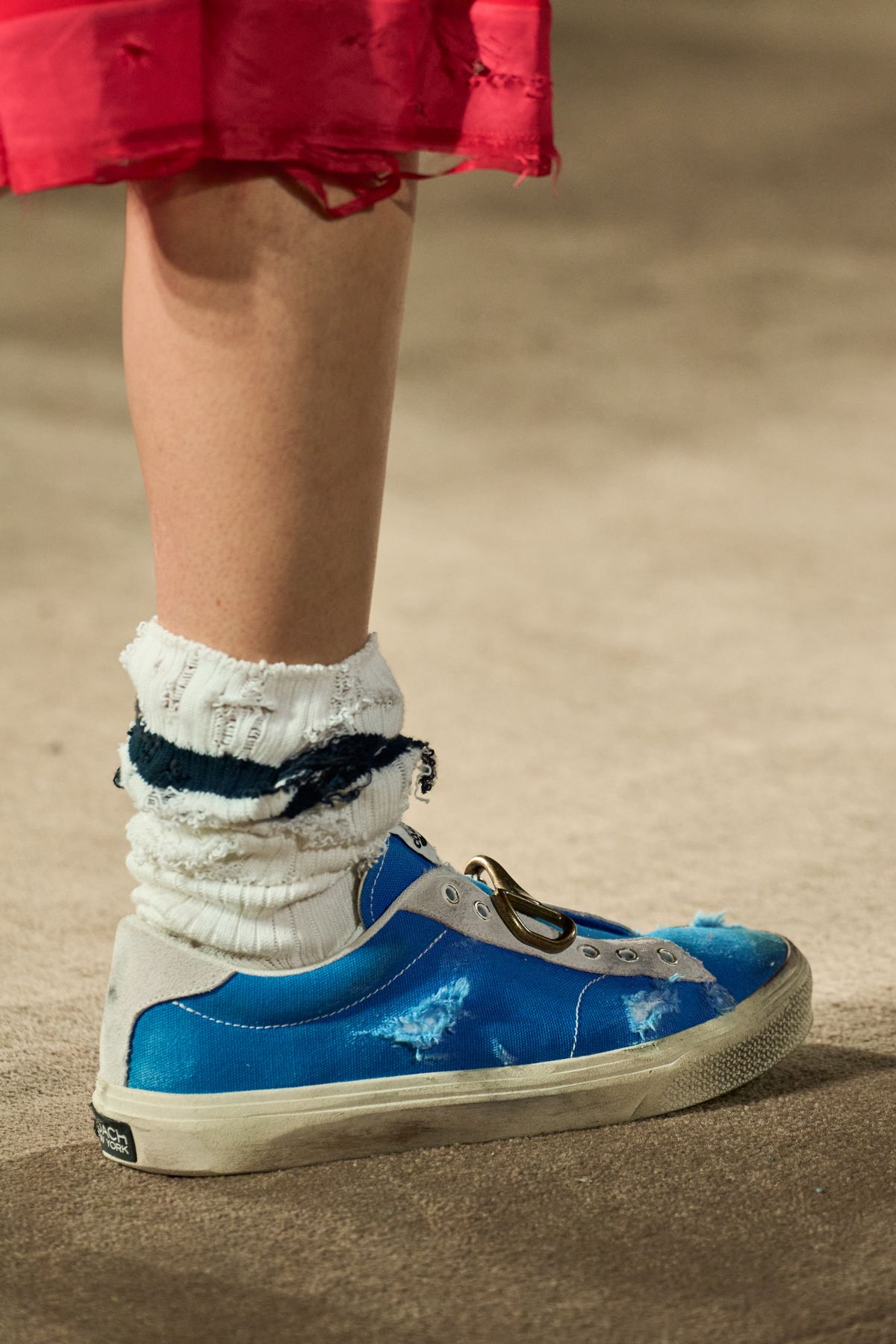 룩은 텍스처와 실루엣의 대비로 완성됐다. 가죽과 시어링 재킷, 울 테일러링, 리퍼포즈드 데님 팬츠가 믹스되며, 1940년대 테일러링과 1970년대 스포츠웨어가 교차한다. 플레어 팬츠, A라인 스커트, 안감을 드러낸 블레이저, 그리고 클래식한 롱드레스에 그래피티 같은 거친 터치를 입혔다. 특히, 30~40년대 할리우드풍 이브닝 가운은 커팅과 아플리케 장식으로 현대적인 글래머를 완성한다.