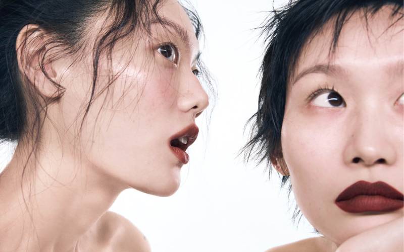 」정면을 꿰뚫는 눈빛과 붉은 기운이 감도는 메이크업 룩, 날카로운 텍스처를 더한 네일 아트가 날 선 긴장감을 만든다. 쌍꺼풀 라인과 언더라인을 따라 Chanel 스틸로 이으 워터프루프, 67 루쥬 느와르로 길고 샤프한 라인을 그린 뒤 부드럽게 스머징해 음영을 준다. 초콜릿 브라운빛의 Hermès Beauty 트레 데르메스 컬러 립 펜슬, 85 루즈 아쉬로 윗입술 윤곽을 또렷하게 잡고, 오렌지 레드 컬러의 42 로즈 자이푸르로 아랫입술 라인을 정교하게 그린다. 그 다음 블렌딩 브러시로 경계를 섬세하게 풀어 번지듯 연출한다.