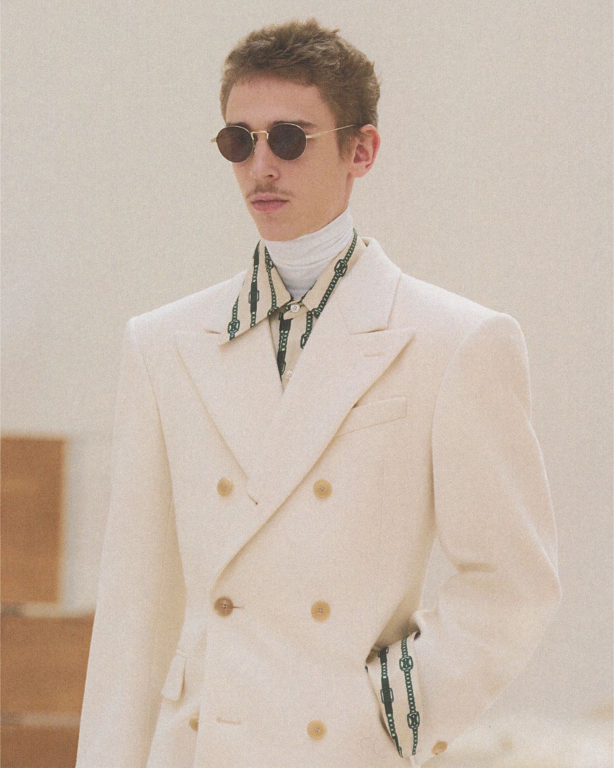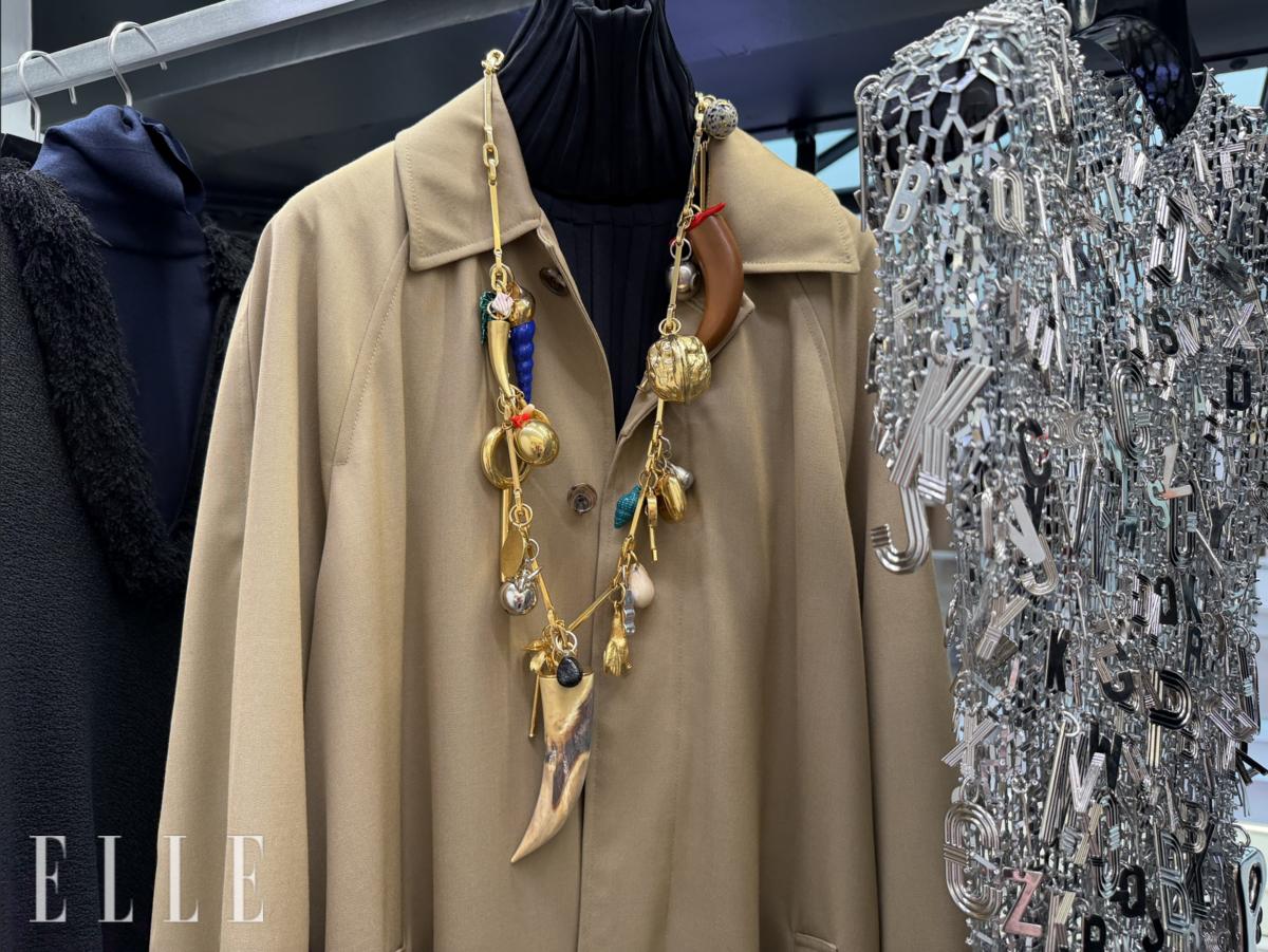 가령 잘 재단된 테일러드 재킷 위에 정리가 덜 된 듯 삐죽 튀어나온 스트라이프 셔츠, 혹은 보색의 대비를 이루는 색 조합, 여행지에서 샀을 법한 장식적인 목걸이를 보라색 재킷 위에 툭 걸친 스타일링 같은 것들 말입니다. 기분에 따라 걸친 듯한데 묘하게 어울립니다. 그 안에는 직관적인 감각과 스타일링에 대한 진심이 자연스럽게 스며 있습니다.