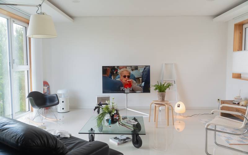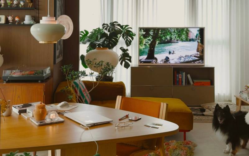 거실에 둔 블랙 컬러의 LC3 옆에는 그가 직접 만들고 ‘MD1(Mandarin Duck 1)’이라 이름 붙인 독특한 선반이 있다. 원앙처럼 마주보기도 하고, 때로는 분리돼 각자의 역할을 하는 이 가구에는 부부의 위트가 담겨 있다. “아내와 싸우면 선반을 반대로 돌려놓으려 했는데, 옮기기 귀찮아서 안 싸우게 됩니다”라며 웃는 그에게서 공간을 대하는 여유가 느껴진다. “매일 새벽 서재에서 도시 풍경을 바라보며 글을 씁니다. 제가 가장 좋아하는 집에서의 순간이에요.”