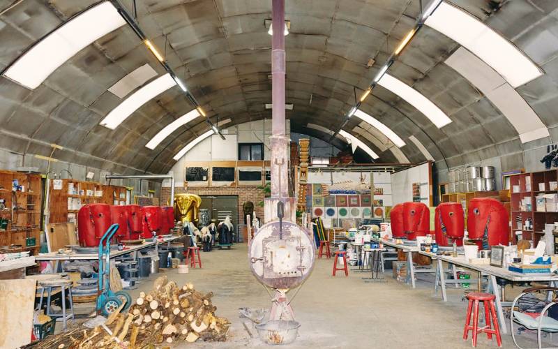 오묘한 청록빛이 감도는 묵직한 도자기 오브제.