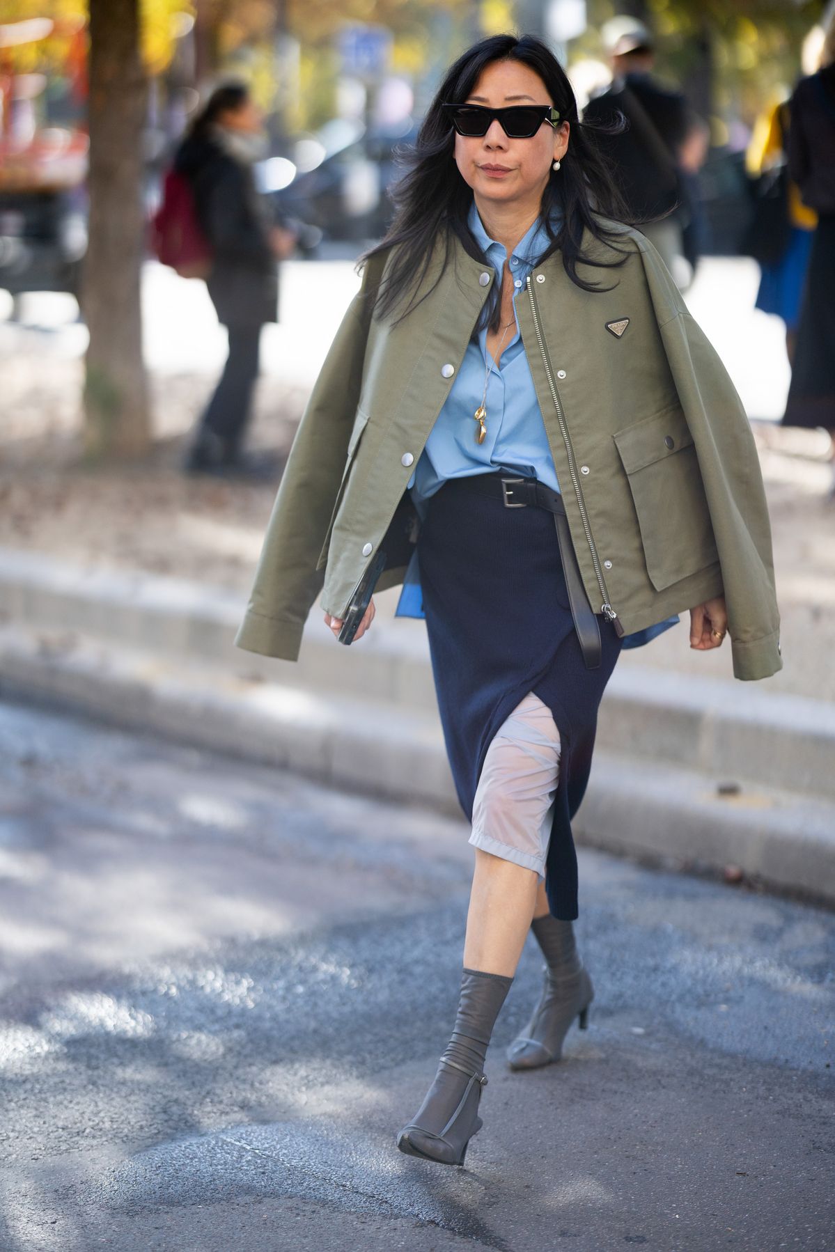 크롭트 기장의 나폴레옹 재킷은 가장 즉각적인 변화를 만들어냅니다. 루즈한 데님 룩 위에 툭 걸치는 것만으로도 전체 실루엣이 단단하게 정리되죠. 테일러링의 힘이 얼마나 큰지 보여주는 대표적인 예입니다. 복잡한 스타일링 없이도, 단 하나의 아이템으로 완성도를 끌어올릴 수 있죠.