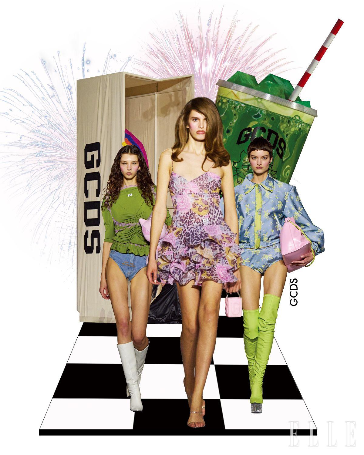 10주년을 맞은 GCDS는 ‘What’s In My Bag’ 컨셉트로 쇼를 구성했다. 쇼핑백에서 물건을 꺼내듯 모델이 등장하며 브랜드 특유의 유머와 문화, 그래픽과 캐릭터, 과장된 실루엣 등 아이코닉한 코드를 한눈에 보여준 것. 무대는 소비 문화와 팝 컬러를 유쾌하게 풍자했고, 쇼핑몰 세계관으로 확장되면서 특유의 캠프적 아이덴티티를 강조했다.