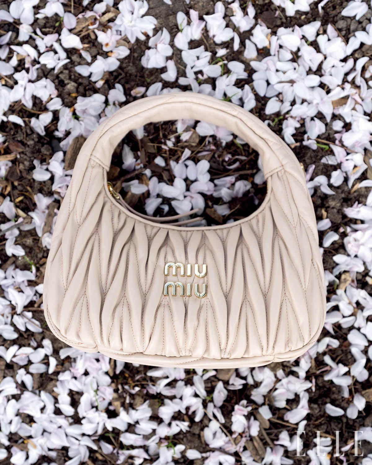부드러운 레더 소재의 보 백은 Miu Miu.