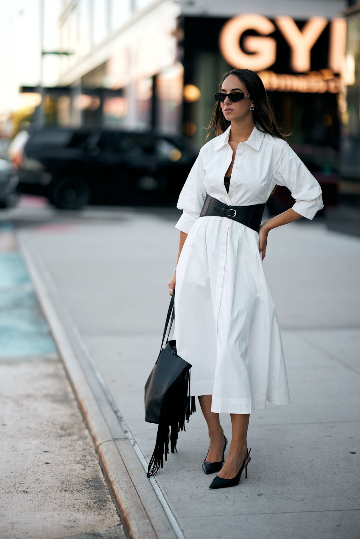 셔츠 원피스 룩의 실루엣을 완성하는 한끗, 클래식 벨트