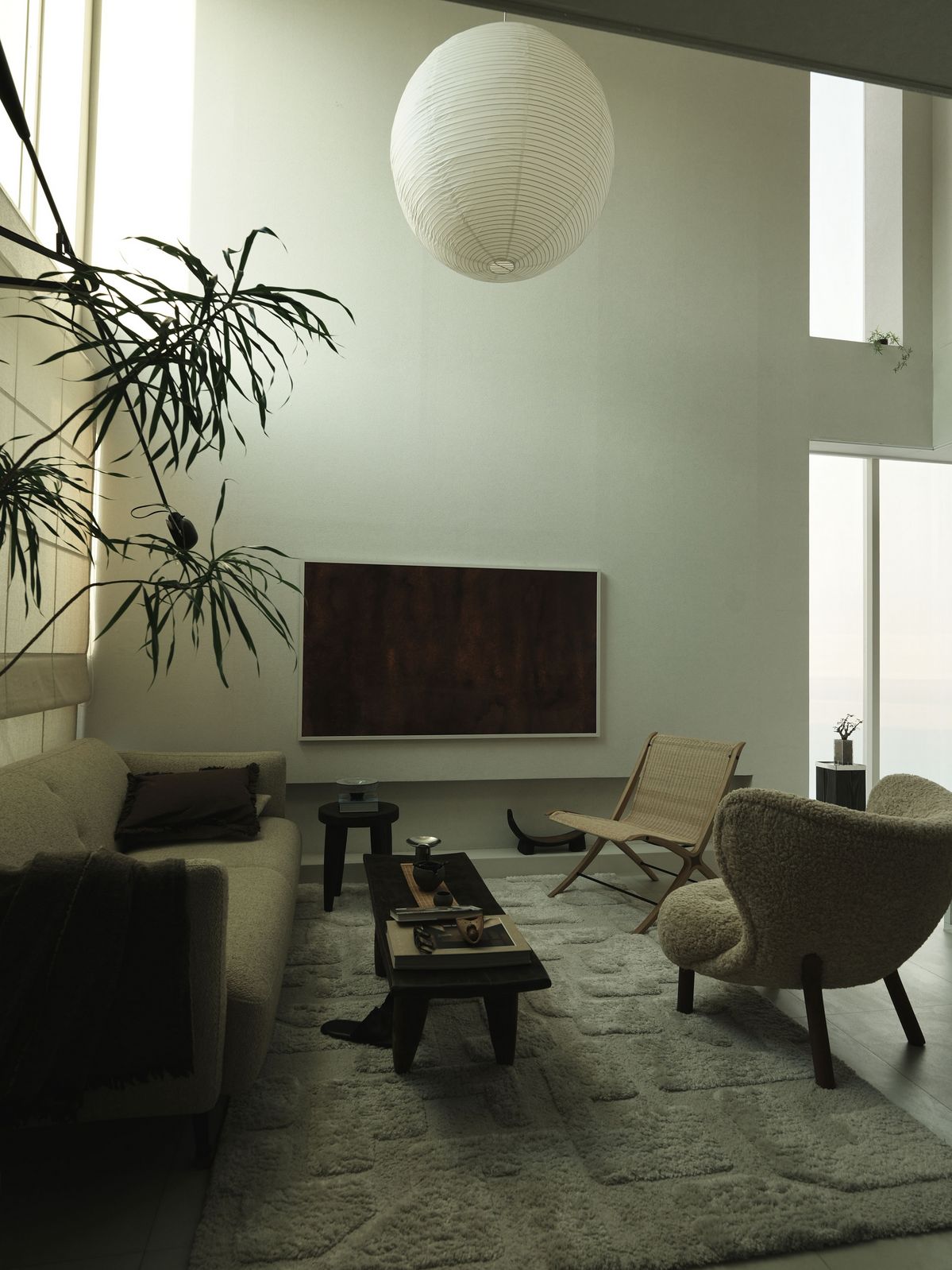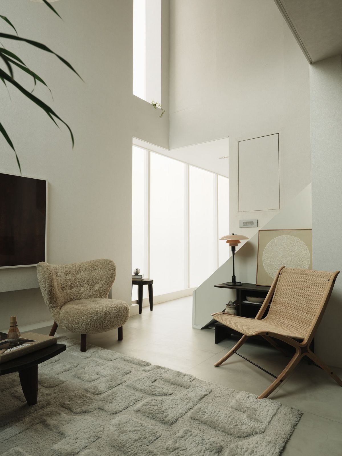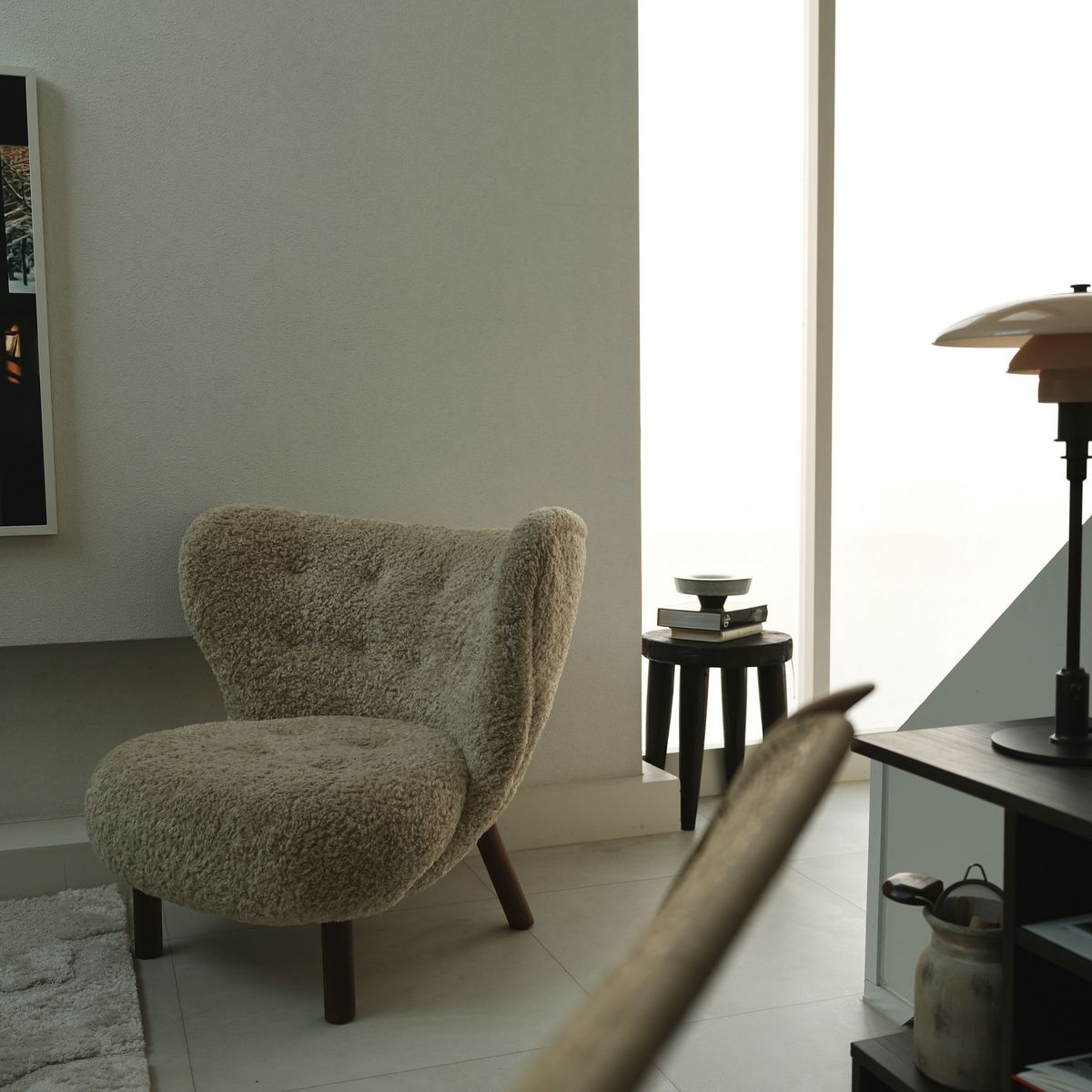 거실 공간의 중심을 잡아주는 앤트래디션(&Tradition)의 ‘리틀 페트라’ 소파와 라운지체어(hm10)에 가장 큰 애착이 가요.