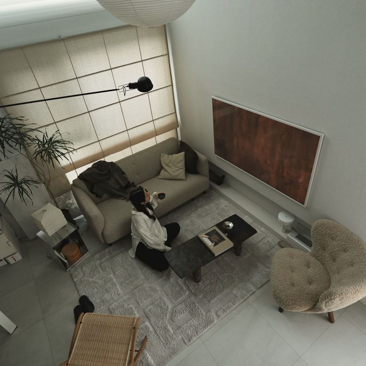 해외 리빙 크리에이터 @daves_home의 감각도 많이 참고했고요. 가장 신경 쓴 부분은 19평이라는 제한된 공간이 답답해 보이지 않도록 시선을 설계하는 일, 그리고 따뜻함이 있는 스타일링을 더하는 것이었습니다.