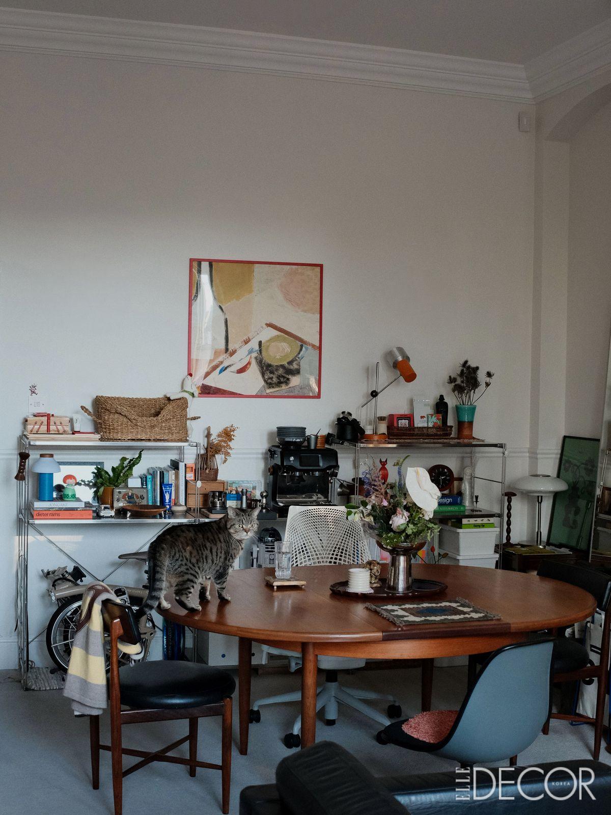 세월이 깃든 건축적 디테일 위에 비트라 체어와 독특한 오브제들이 고양이의 온기와 자연스럽게 어우러지는 집의 일상.