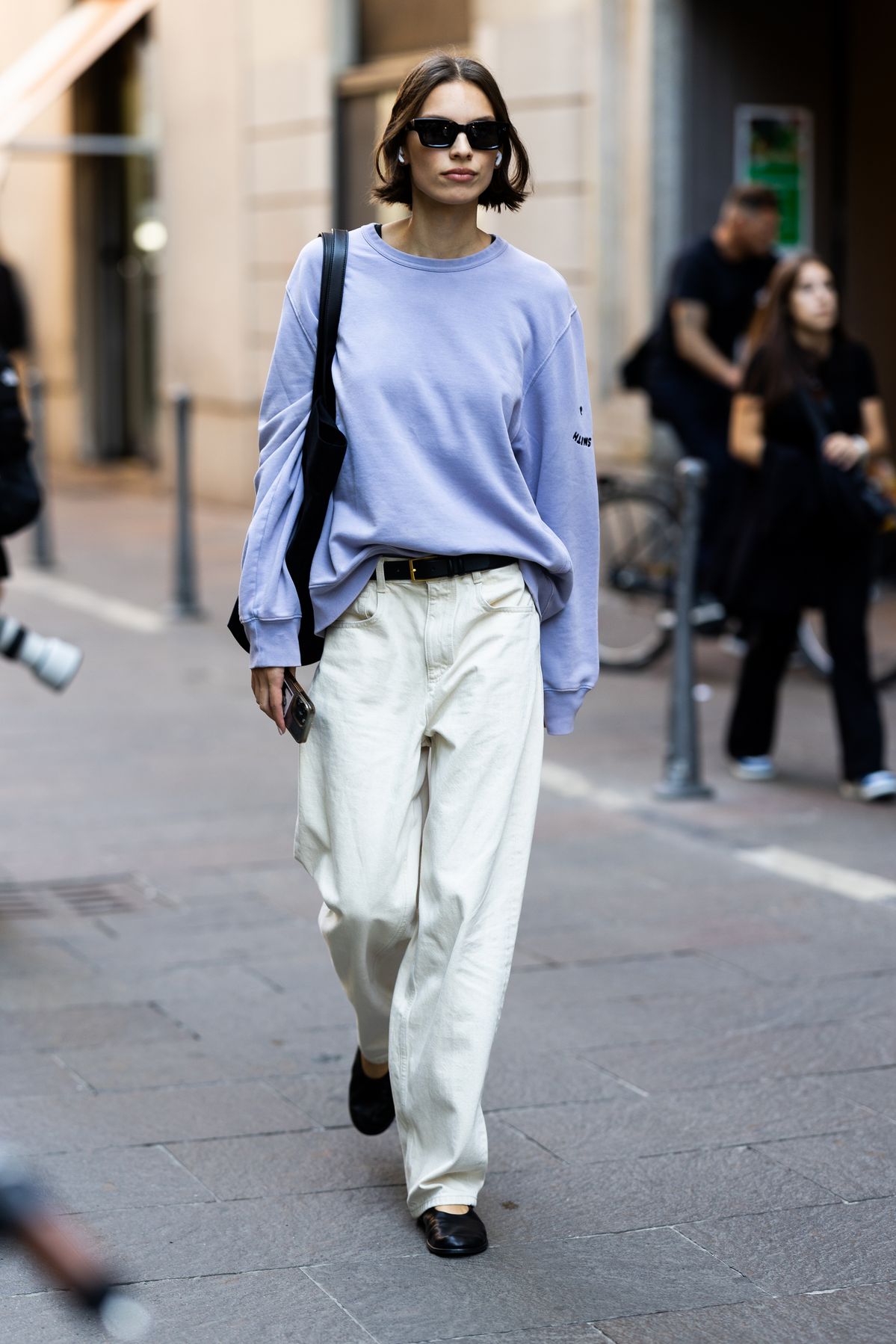 꾸민 듯 안 꾸민 티를 내고 싶은 날엔 여유 있는 핏의 화이트 진에 루즈한 긴 소매 톱을 더하고, 발끝에는 발레 플랫을 매치해보세요. 대비되는 무드가 자연스럽게 어우러지면서, 계산하지 않은 듯한 세련된 균형이 완성될 테니까요. 과하게 힘을 주지 않았는데도 스타일리시해 보이는 이유는 바로 이 대비에 있습니다. 여기에 토트백과 선글라스를 더하면 모델 오프 듀티 룩처럼 무심하면서도 쿨한 분위기가 완성되죠.