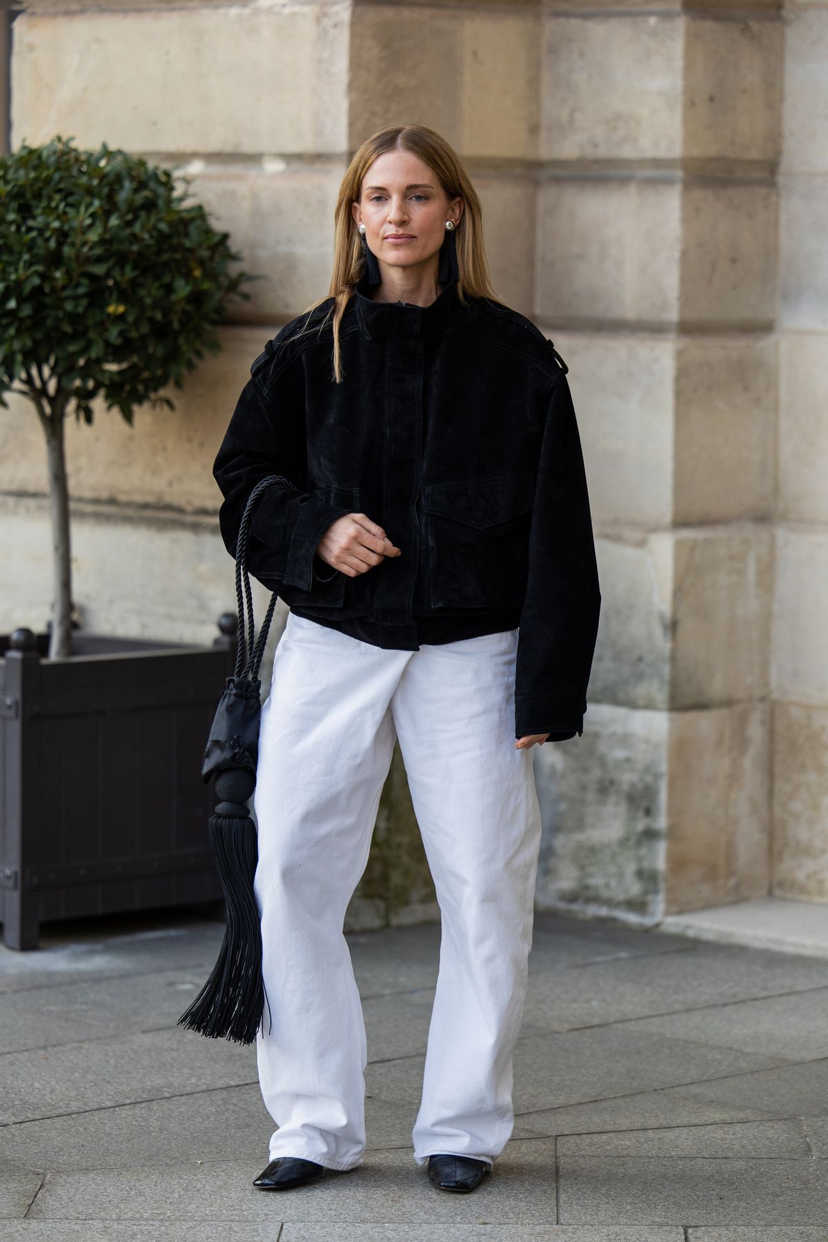 모노크롬 룩은 언제나 간결하면서도 강력한 인상을 남깁니다. 화이트 진을 중심으로 전체 컬러를 통일하면, 복잡한 디테일 없이도 충분히 세련된 분위기를 연출할 수 있죠. 여기에 퍼널넥 재킷을 더하면 룩에 구조적인 긴장감이 더해지며 한층 현대적인 무드가 완성됩니다. 여기에 부츠를 매치하면 전체적인 실루엣이 더욱 또렷해지고, 스타일링에 무게감이 생깁니다. 단순한 조합이지만 디테일에 따라 완성도가 크게 달라지는 만큼, 아이템 하나하나의 질감과 핏을 신중하게 고르는 것이 핵심입니다.