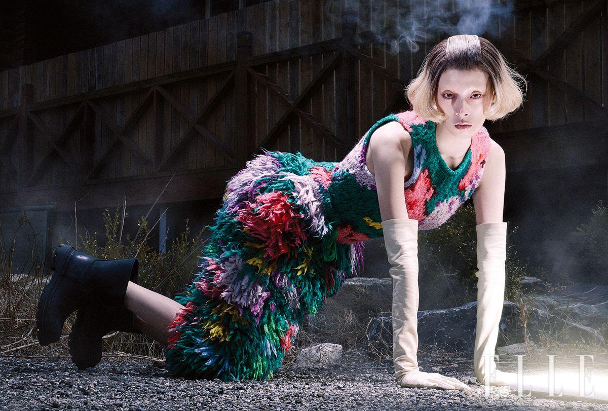드레스와 장갑은 가격 미정, 모두 Balenciaga. 부츠는 가격 미정, Coach.