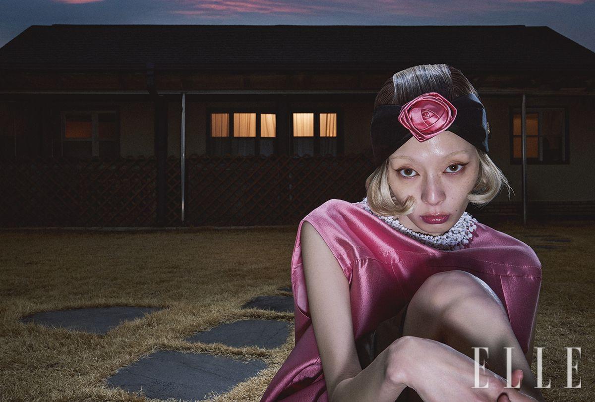 드레스는 가격 미정, Prada. 헤어밴드는 가격 미정, Roger Vivier.