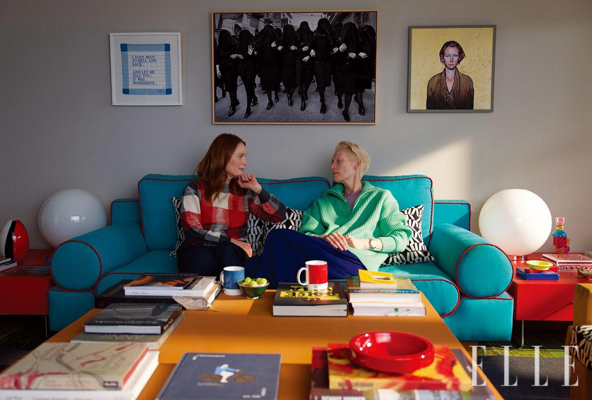 마사의 서재 한 벽면은 유기적 형태의 로셰보보아 램지 책장이 차지하고 있다. 마사의 아파트 현관 옆에 걸려 있는 거대한 그림은 스페인 작가 호르헤 갈린도(Jorge Galindo)의 작품이다. 콜라주 기법을 접목한 컬러플한 회화를 선보여 온 그는 알모도바르 감독이 촬영한 사진을 보고 협업을 제안했고, 그 결과물로 뉴욕에서 전시회를 열기도 했다. 영화 속 그림도 두 사람의 합작품인 ‘플로레스(Flores)’다. 숲속 주택은 영화에서 미국 동북부로 설정됐지만, 실은 스페인 마드리드 부근의 산맥 기슭에 있다.