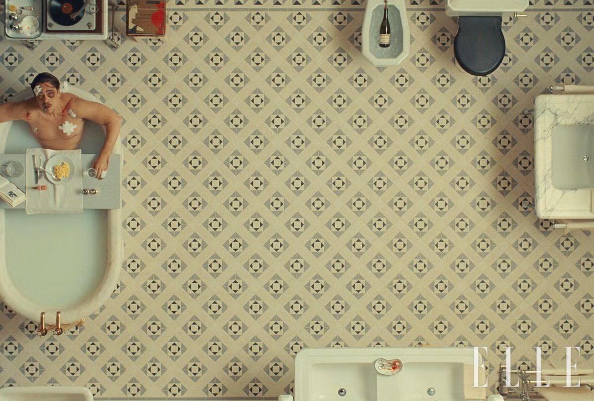 코다가 고급 욕실의 욕조에 앉아 식사하고 책을 읽는, 특별하고 아름다운 오프닝 장면도 관객의 시선을 압도한다. 빈티지 타일 패턴부터 욕조 형태, 하녀들의 슬로 모션은 수많은 모델링 작업과 연습을 통해 만들어진 것. 19세기 초 유럽에서 피라미드와 스핑크스, 상형문자 같은 고대 이집트의 상징적 모티프를 건축과 장식에 적용한 이집트 부흥 양식이 엿보이는 사막 호텔도 이 영화의 백미다. 프로덕션 팀은 상형문자를 현대적으로 디자인해 인테리어에 반영했다. 영화 속에는 자자가 수집한 명화 컬렉션도 등장하는데, 르누아르의 1889년 작 ‘푸른 옷을 입은 아이’와 마르그리트의 1942년 작 ‘적도’를 비롯한 몇 점은 놀랍게도 진품이다. 촬영장에는 명작을 보호하기 위한 경호원이 배치됐고, 엔딩 크레딧에는 이 작품에 대한 경의를 표하는 장면도 등장한다.