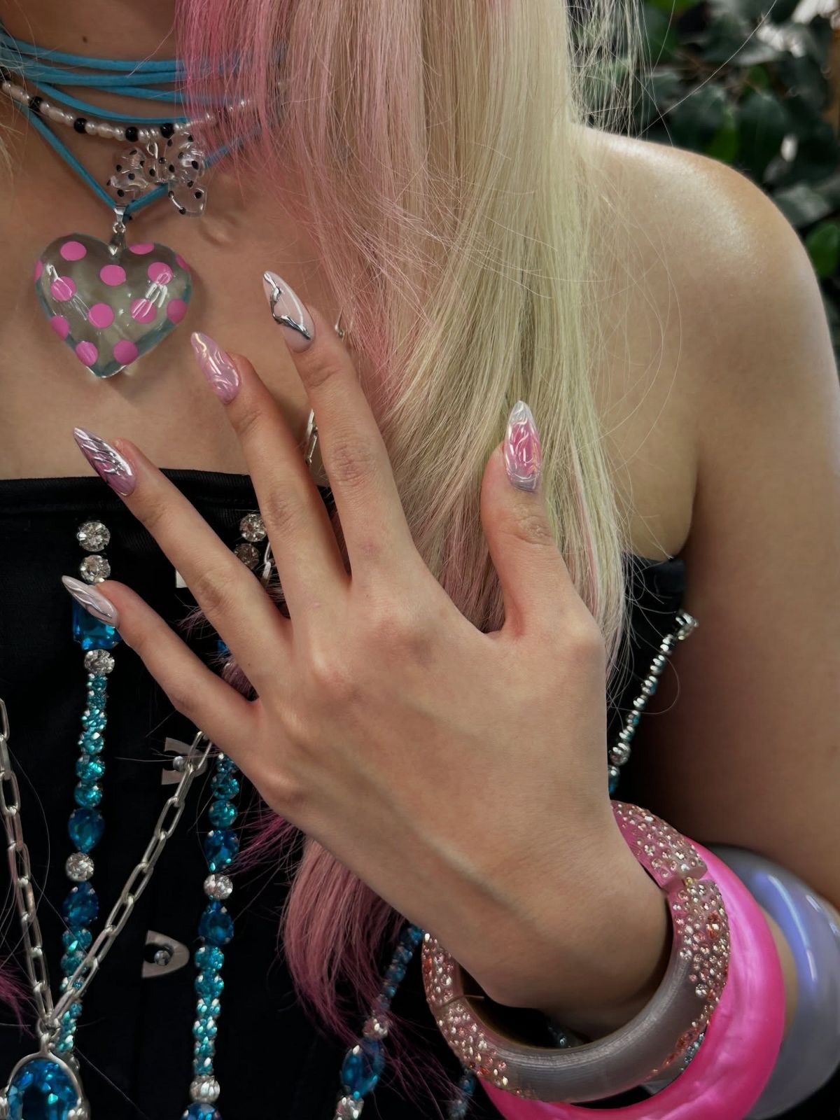 코첼라 페스티벌의 첫날 공연을 장식한 캣츠아이는 핑크, 블랙, 실버 컬러를 중심으로 멤버마다 다채로운 개성을 드러냈습니다. 도트, 스트라이프, 플라워 등 다양한 패턴과 함께 리본이나 입체적이고 기하학적인 장식을 더해 전체적으로 Y2K와 미래적인 무드가 공존하며 키치한 네일 아트를 선보였습니다.