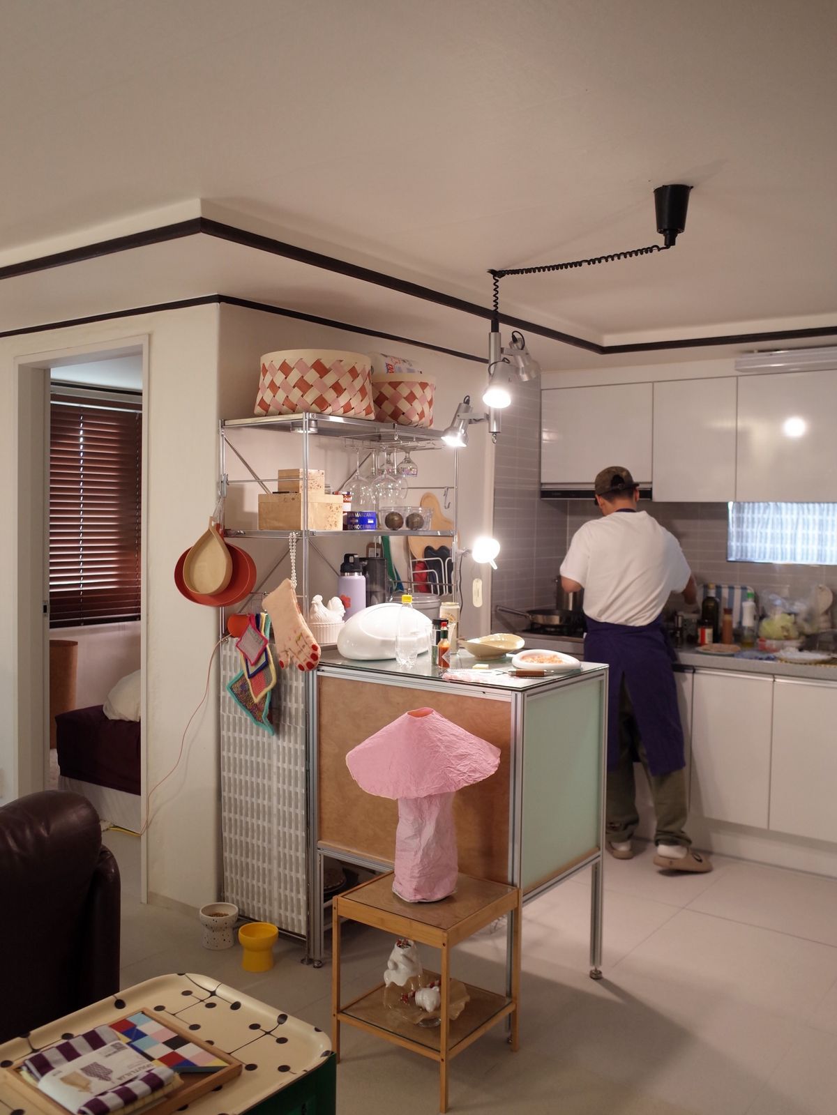 소파나 선반은 벽에 주방용품은 주방에 라는 기준을 두지 않아서 더 자유로워 보일 수 있는 거 같아요.