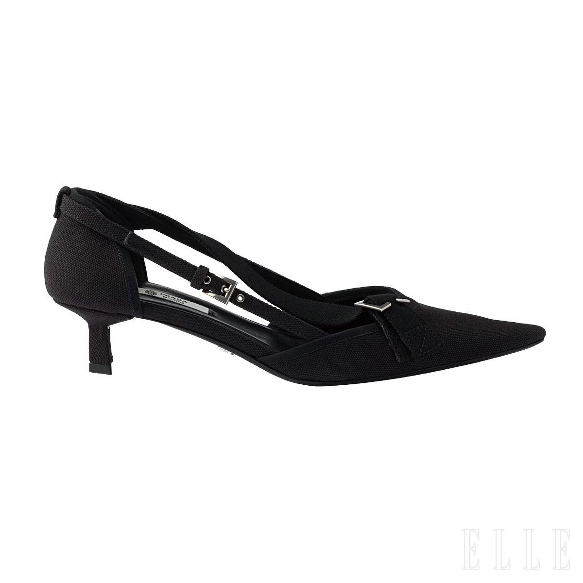 버클 스트랩으로 포인트를 준 캔버스 펌프스는 1백75만원, Prada.