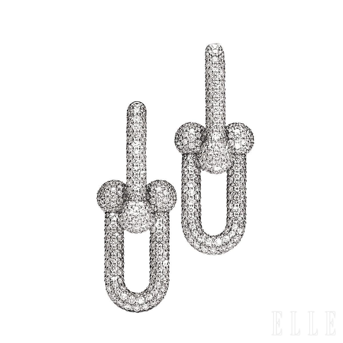 화이트골드에 다이아몬드를 파베 세팅한 하드웨어 링크 이어링은 가격 미정, Tiffany & Co.