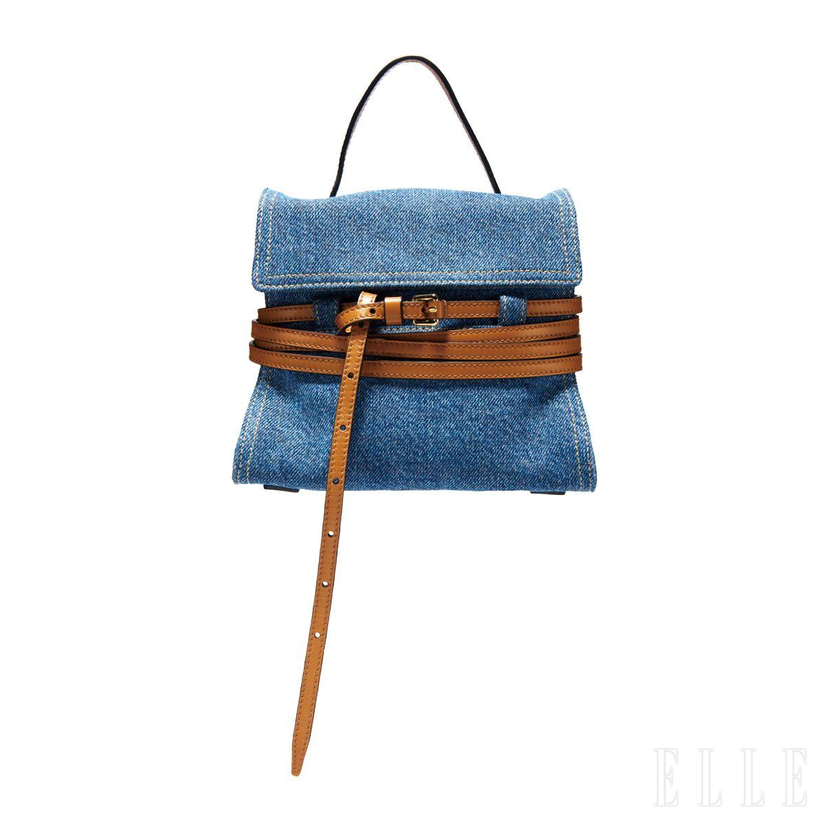 가방을 감싼 벨트 장식이 돋보이는 데님 백은 1백54만원, Moschino.