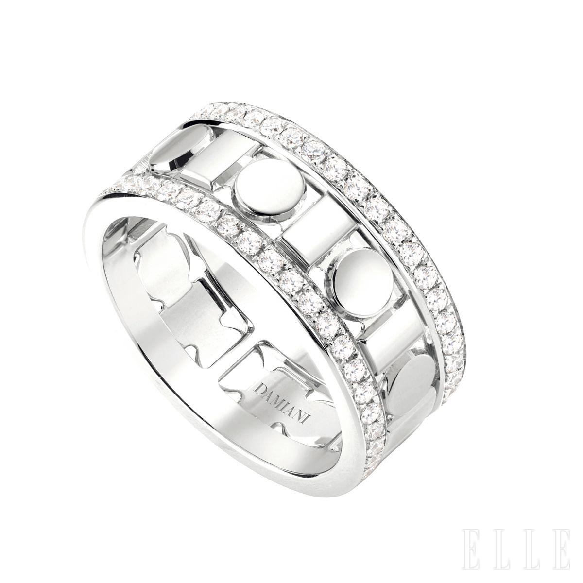 다이아몬드를 세팅한 기하학적 디자인의 벨에포크 릴 링은 가격 미정, Damiani.