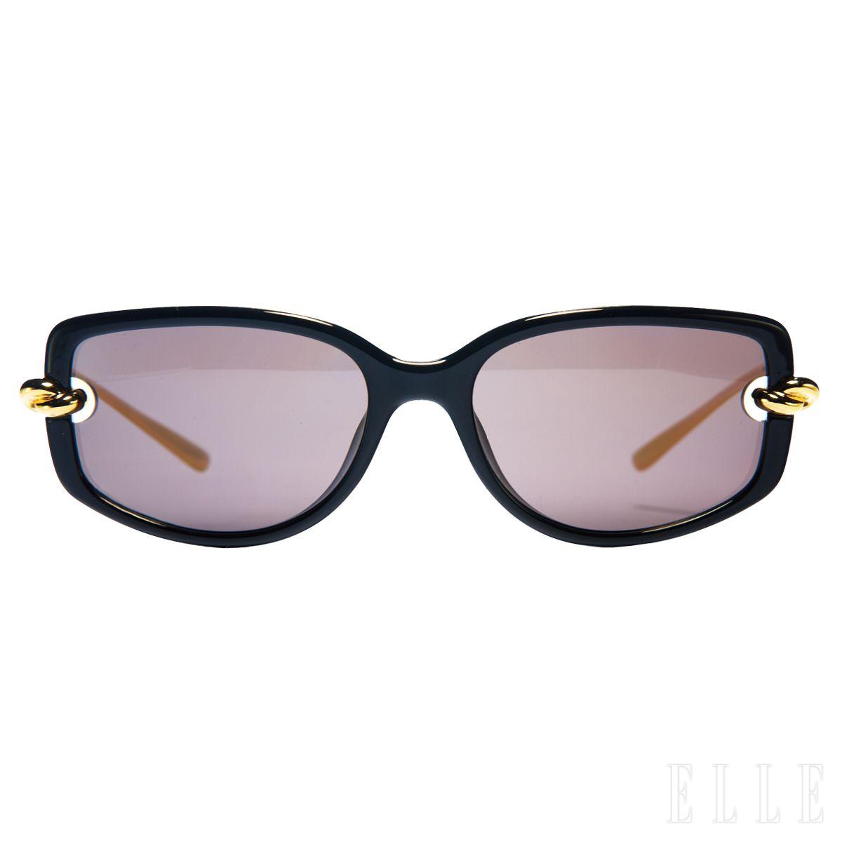 메탈 안경 템플과 블랙 프레임이 대비를 이루는 선글라스는 88만원, Bottega Veneta by Kering Eyewear.