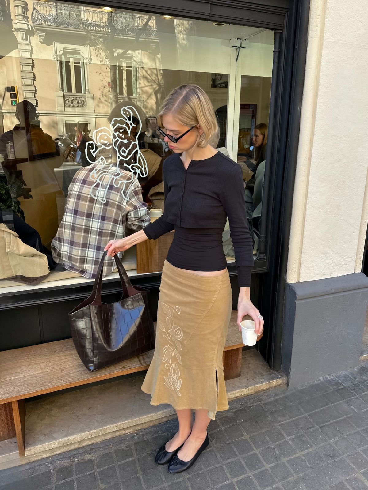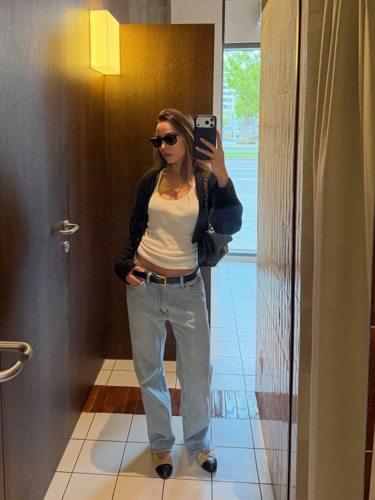 탄탄한 복근을 드러내는 크롭 톱, 골반에 걸쳐 입는 로우 라이즈 하의 그리고 그 아래 무심하게 놓인 발레 플랫을 보세요. 건강하게 빛나는 피부가 두드러지는 이 조합은 평범한 일상의 순간조차 하나의 완성된 런웨이처럼 보이게 합니다. 필라테스를 마치고 나온 듯한 스포티 레깅스 룩이든, 미니멀한 블랙 톱에 고상한 베이지 스커트를 매치한 1990년대 룩이든, 한계를 모르는 발레 플랫의 유연함은 약간의 반항기가 섞인 Y2K 무드까지 품을 수 있어요.