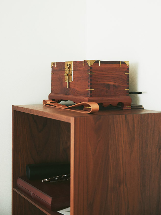 침실 한쪽 수납장 위에 놓인 전통적 디자인의 경대. 시간이 지날수록 색과 모양새가 더욱 깊어질 것이다.