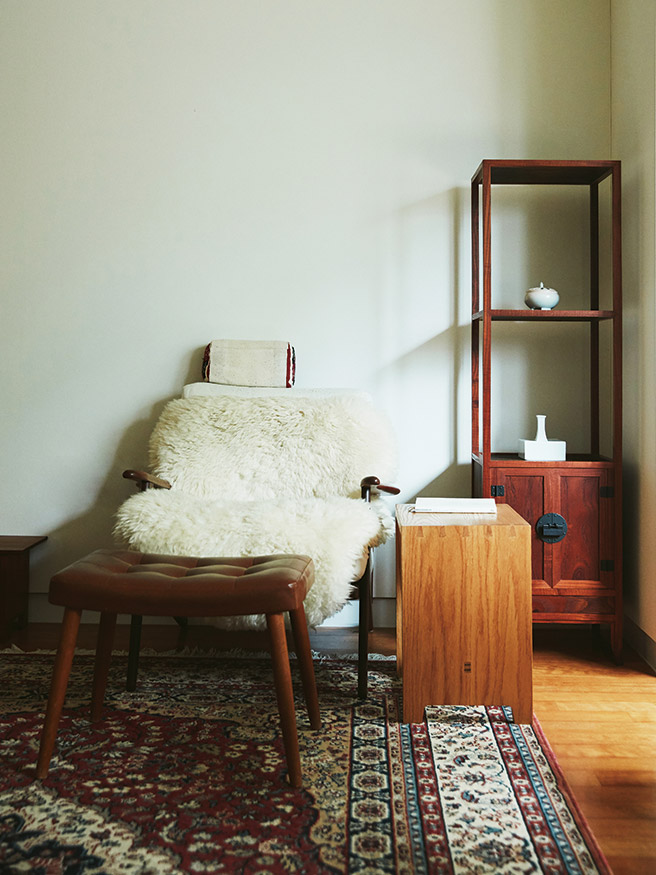 거실의 페르시언 카펫 위에 놓인 단정한 소반. 점점 자리를 많이 차지하지 않는, 작은 가구가 좋아진다는 집주인의 취향이 느껴진다.