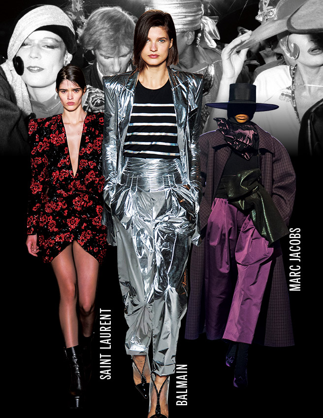 쾌락과 향략의 시기, 80년대 코드가 2018년 밀레니얼 시대의 뉴 레트로로 부각되고 있다. 단순히 대디 코어 실루엣을 넘어, 더욱더 크고 대담한 쿠튀르 터치가 가미된 파워 실루엣이 강세다. 특히 80년대를 수놓은 클로드 몬태너의 구조적이면서 조형적인 실루엣과 더불어 셰어나 티나 터너의 무대 의상을 연상시킬 만큼 눈부시게 반짝이는 주얼 장식, 볼드한 컬러와 장식적인 기교들이 믹스돼 한층 더 파워플한 무드를 완성! 몬태너를 오마주한 듯 완벽하게 재현한 마크 제이콥스를 비롯해 눈부신 글램 스타일을 화려하게 치장한 올리비에 루스테잉의 발망, 언제나 새로운 트렌드를 제시하는 발렌시아가까지 슈퍼 디자이너들은 문화 전성기 시대, 80년대를 향한 향수를 맘껏 표현하고 있다.