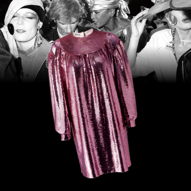 봉긋한 어깨 라인과 반짝이는 스팽글 장식의 미니드레스는 가격 미정, Miu Miu.