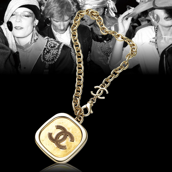 큼지막한 펜던트의 체인 네크리스는 가격 미정, Chanel.