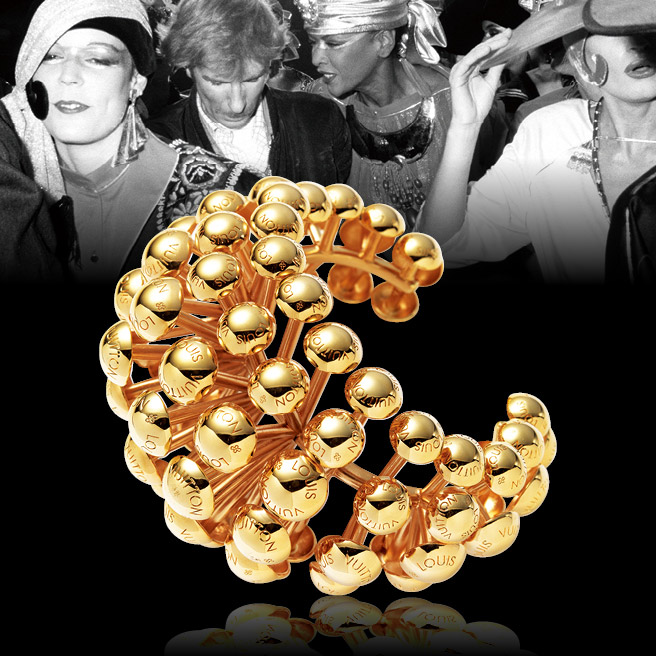 볼드한 골드 브레이슬렛은 가격 미정, Louis Vuitton.