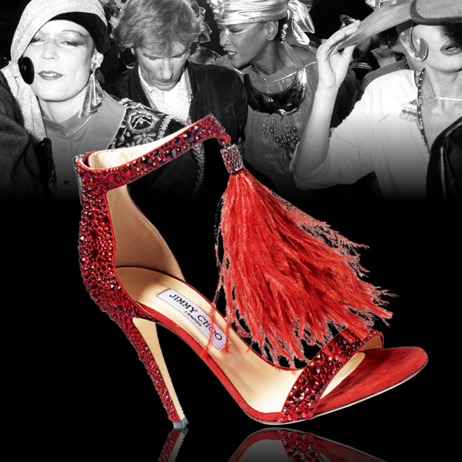 깃털과 크리스털 장식의 샌들 힐은 2백53만원, Jimmy Choo.